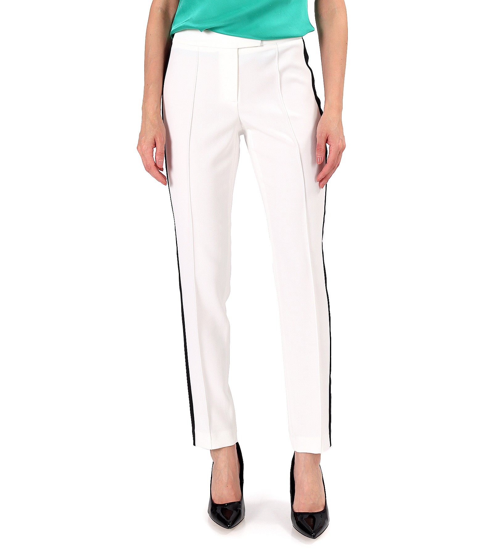 Ankle pants with a stripe on the side and elastic with crystals at the waist (Ivory), size