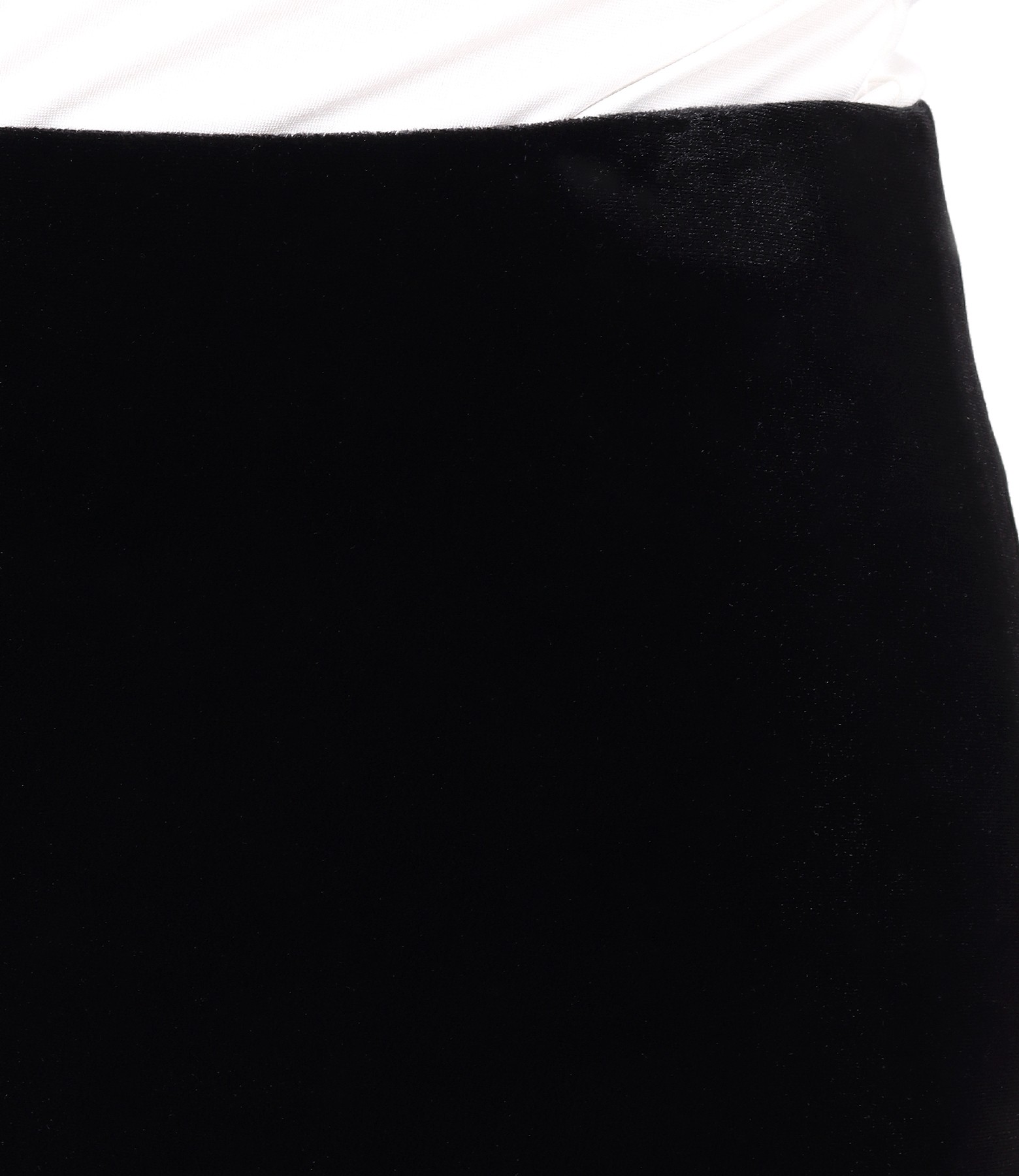Black elastic velvet tapered skirt, padded. Cut in the middle of the back, without slit. Closes with a hidden zipper on the middle of the back.