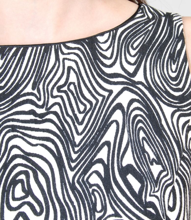 Black&white elastic brocade dress with cotton, round neckline, sleeveless. Middle-back concealed zip fastening.