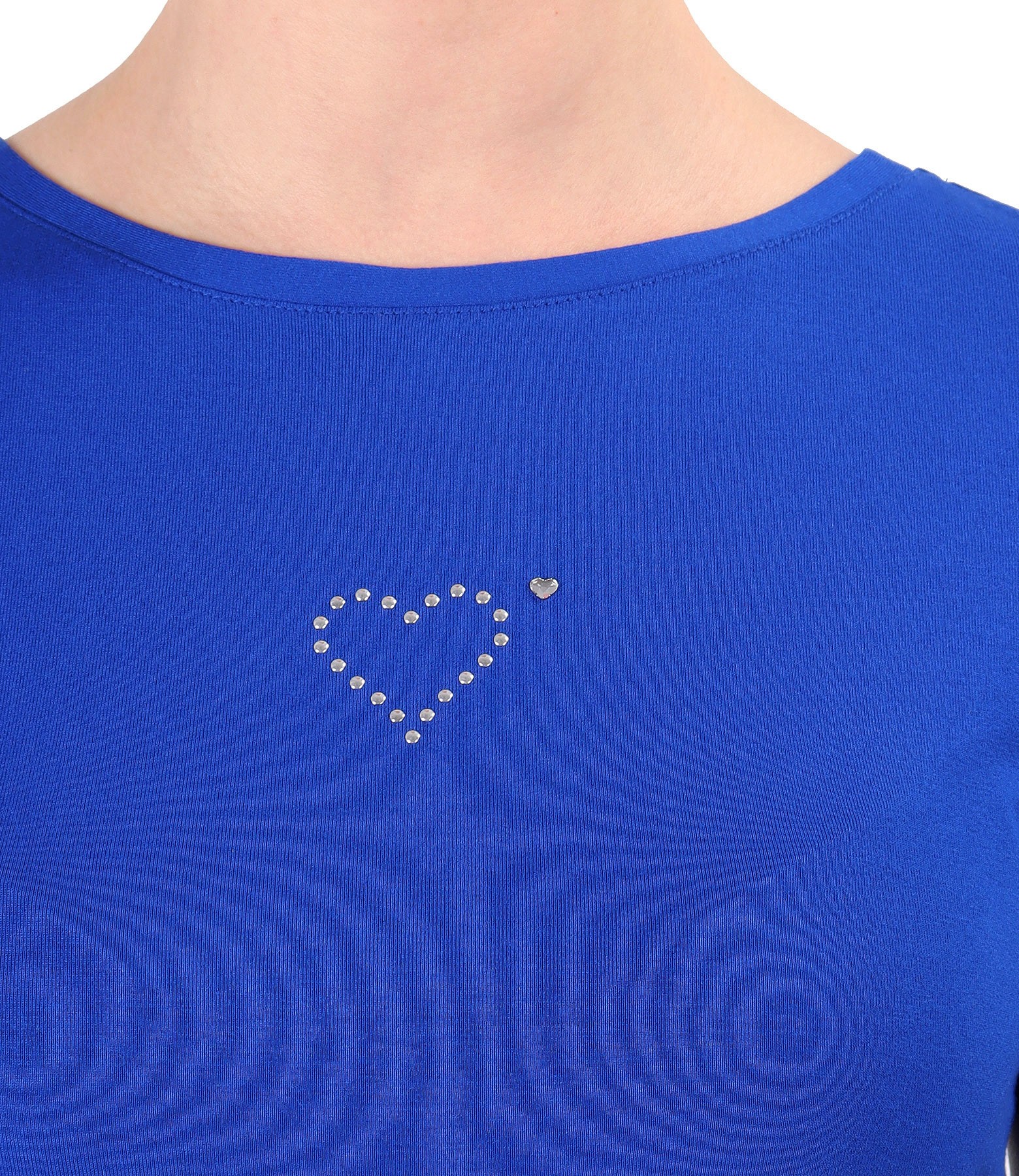 Blouse made of fine elastic jersey, with round neckline, short sleeves and heart-shaped decorative application on the face.