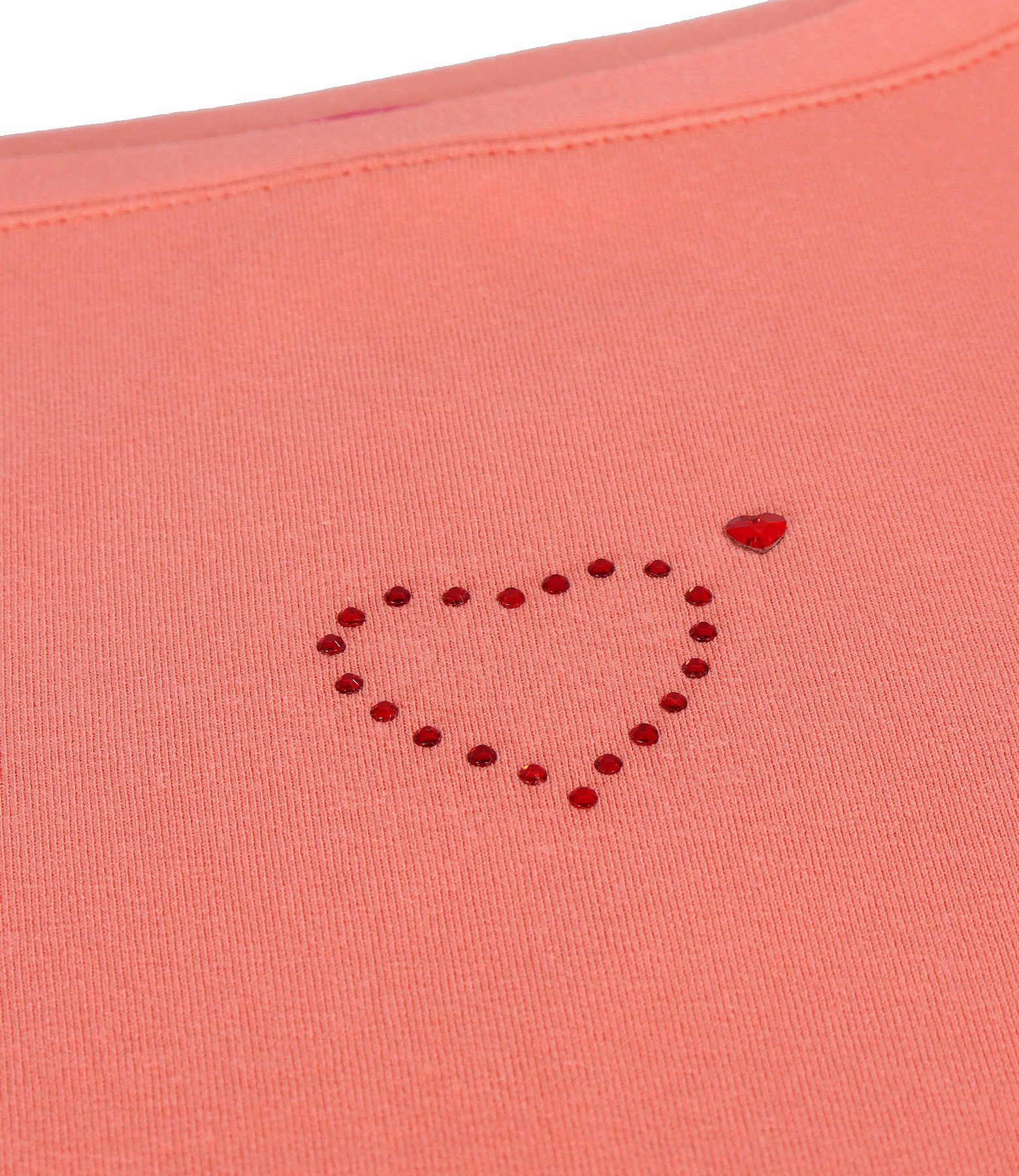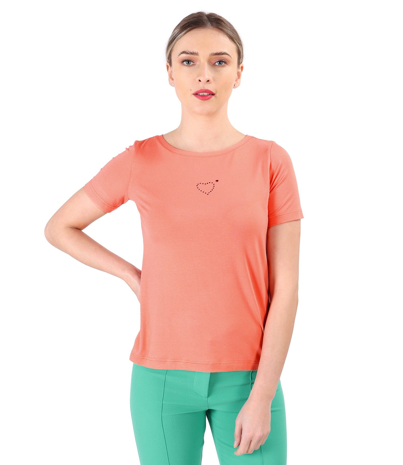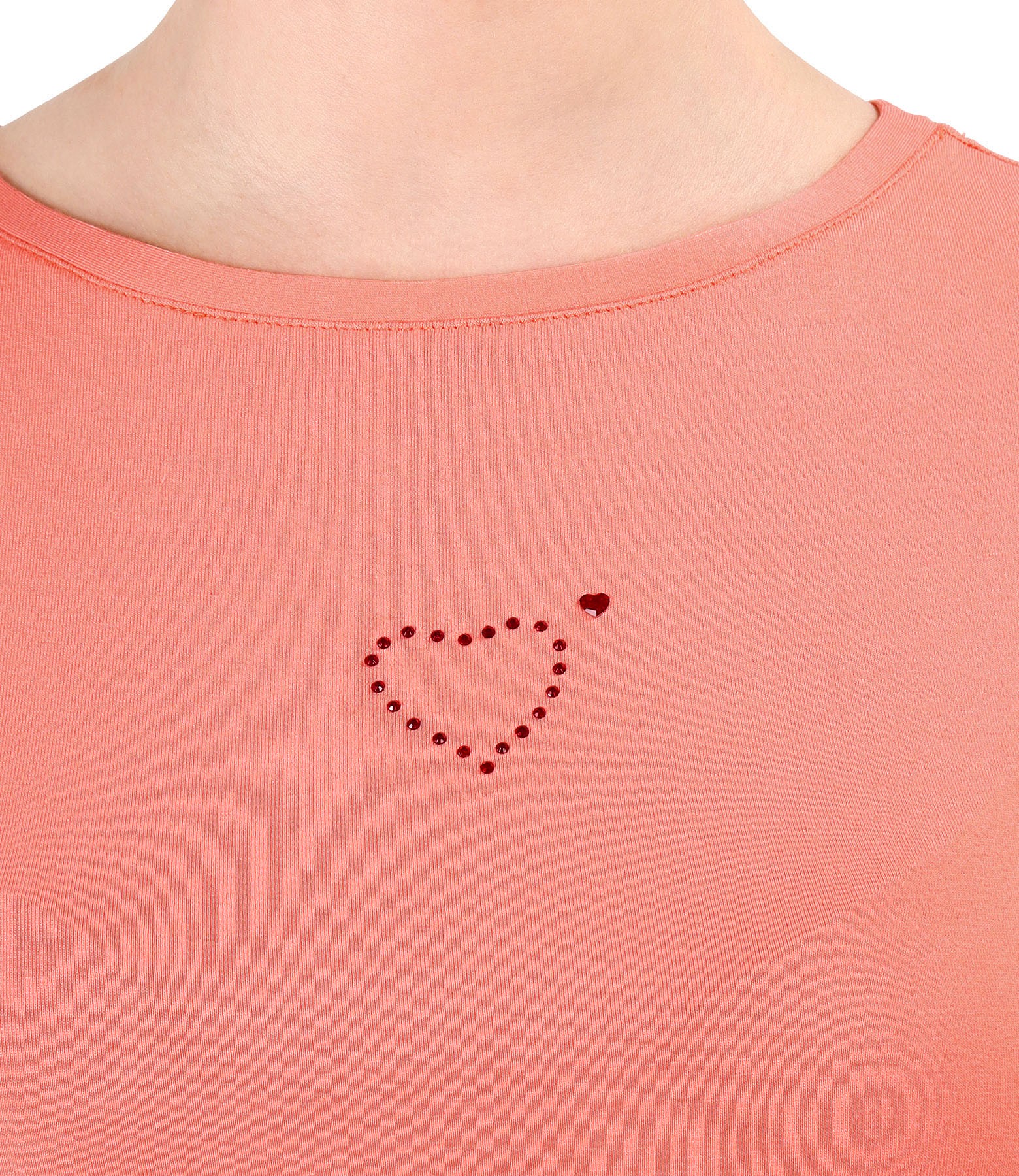 Blouse made of fine elastic jersey, with round neckline, short sleeves and heart-shaped decorative application on the face.