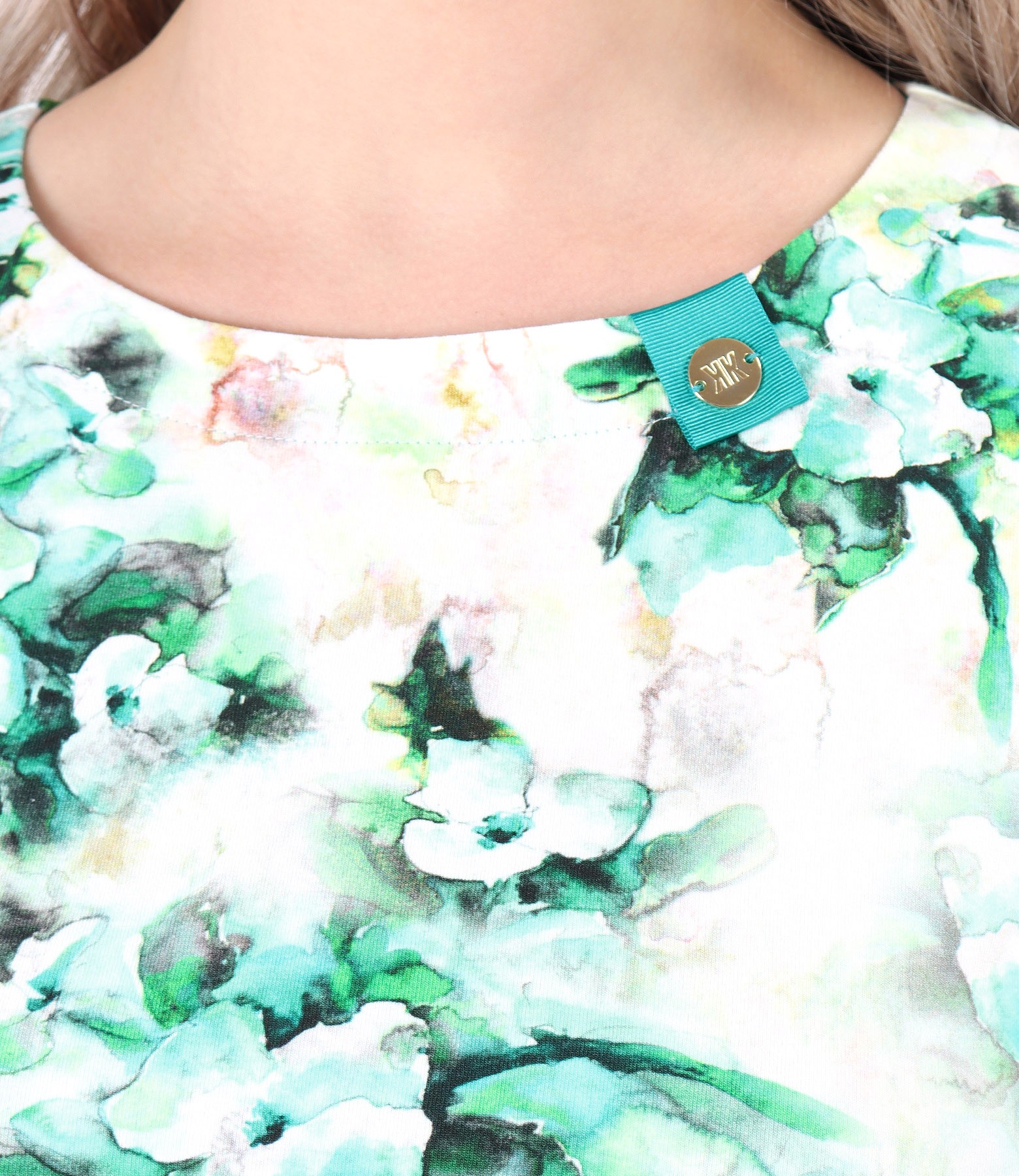 Blouse made of printed elastic cotton (Turquoise Green), size
