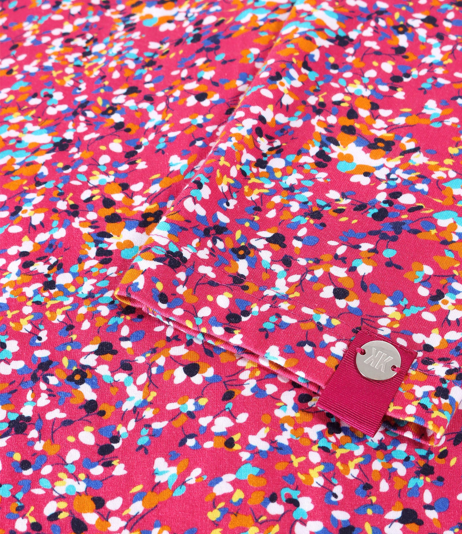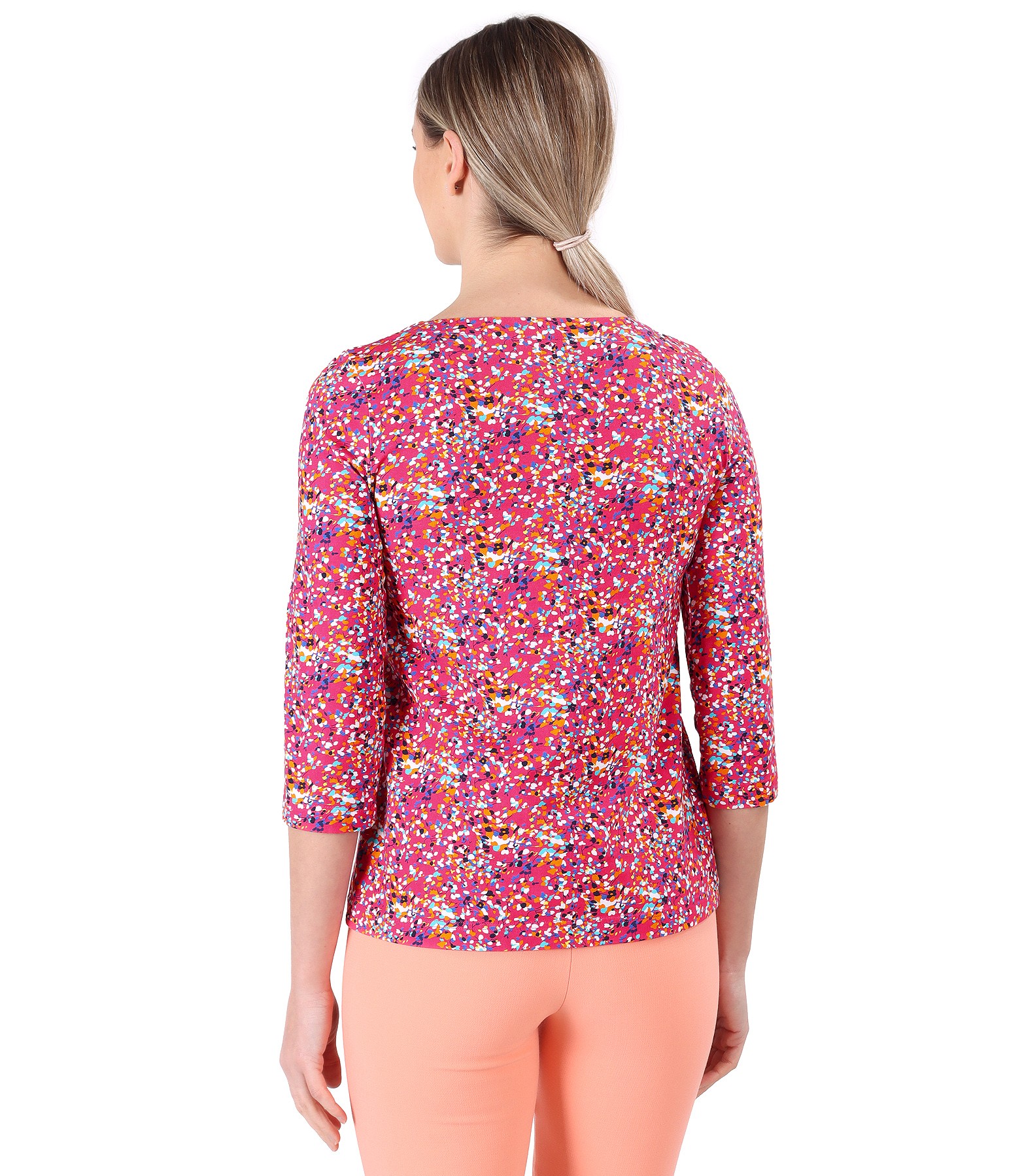 Blouse made of elastic cotton printed with floral motifs, with 3/4 sleeves and a round neckline.