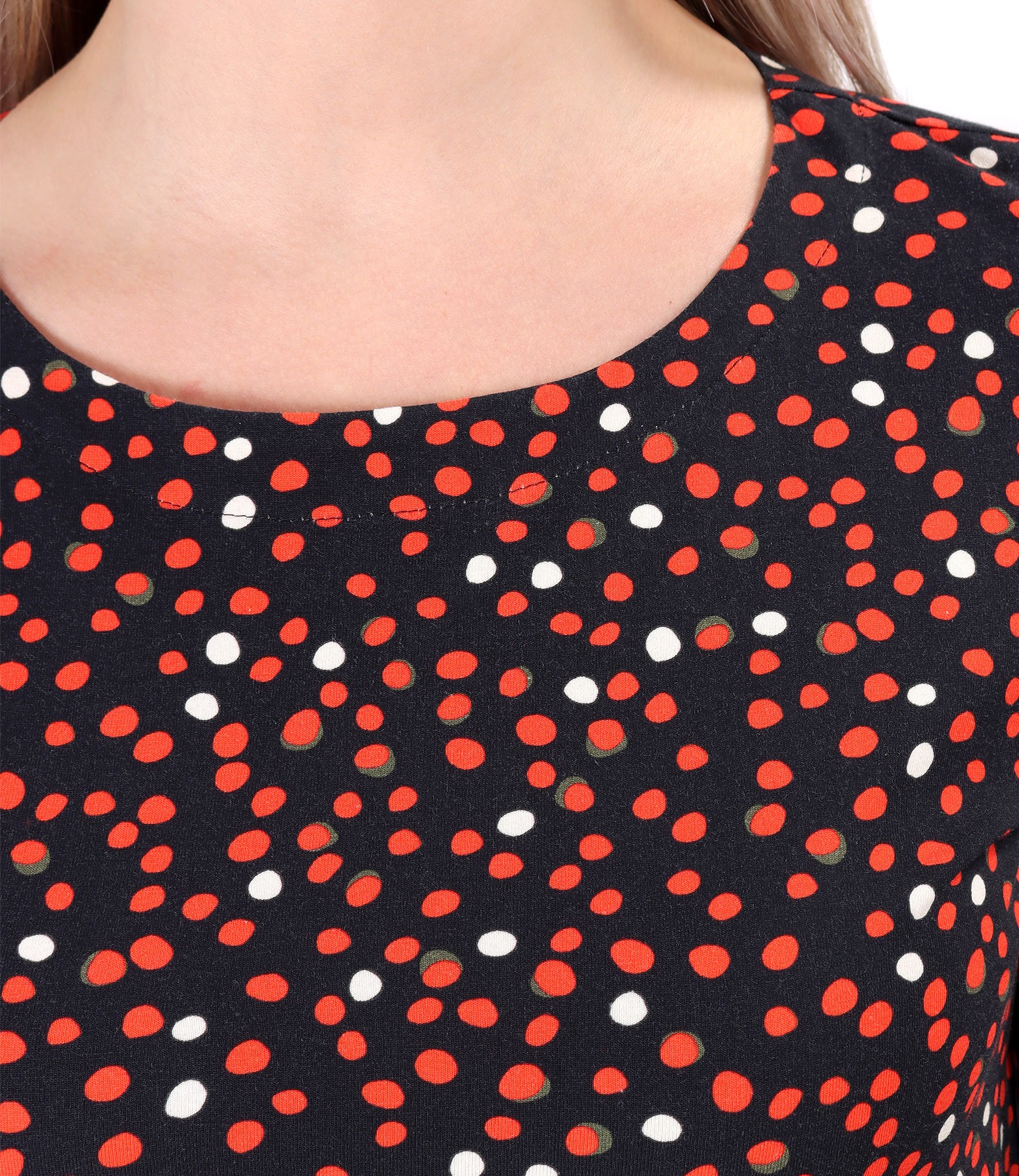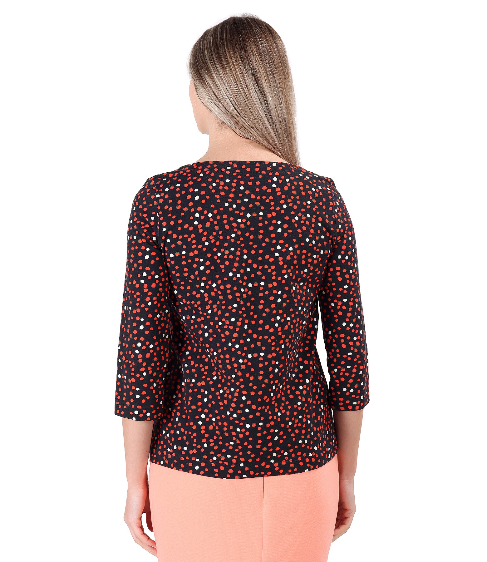 Blouse made of printed elastic jersey, with 3/4 sleeves and round decolletage.