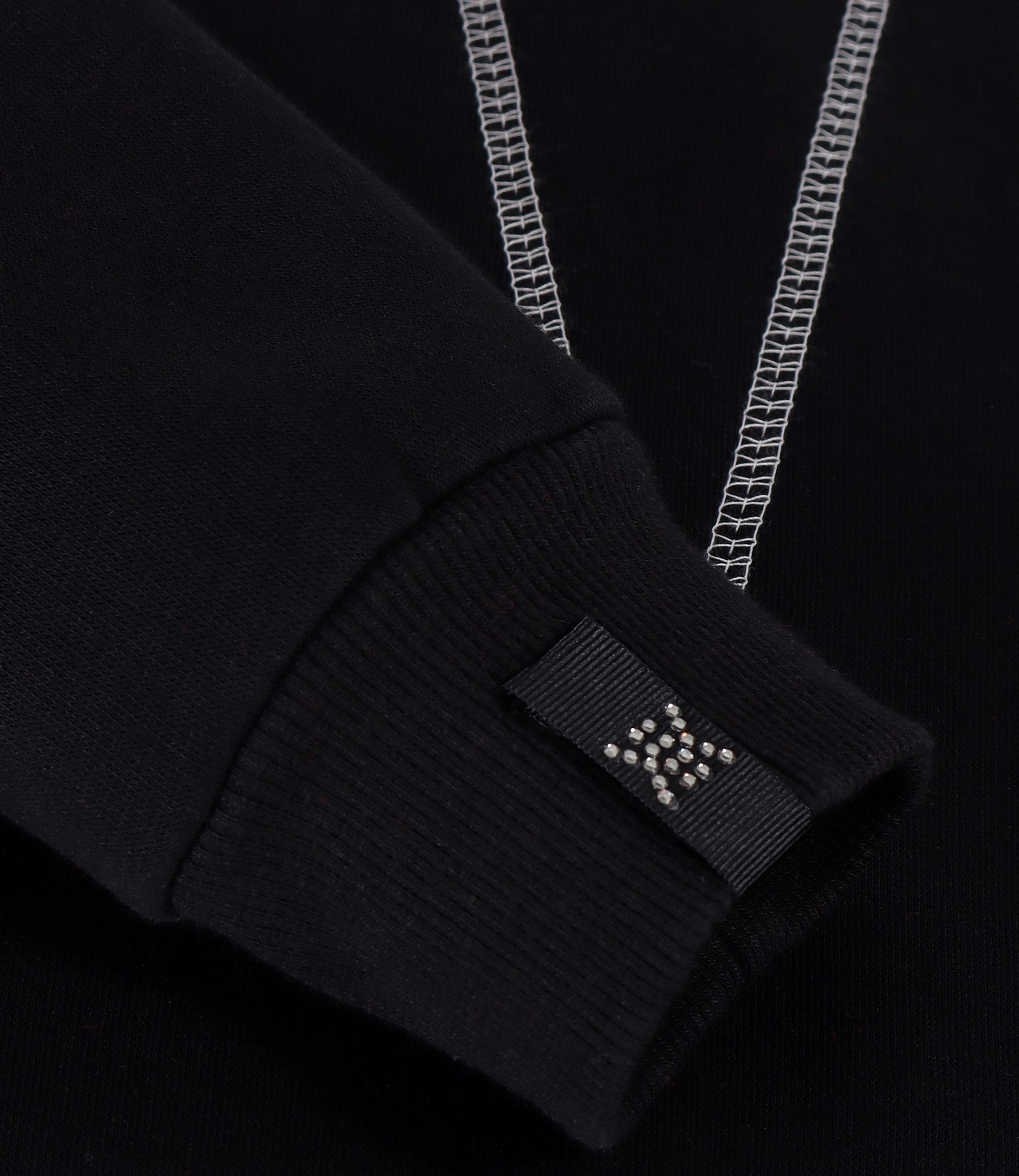 Blouse made of thick cotton, with long sleeves, round decolletage and contrasting decorative stitching.