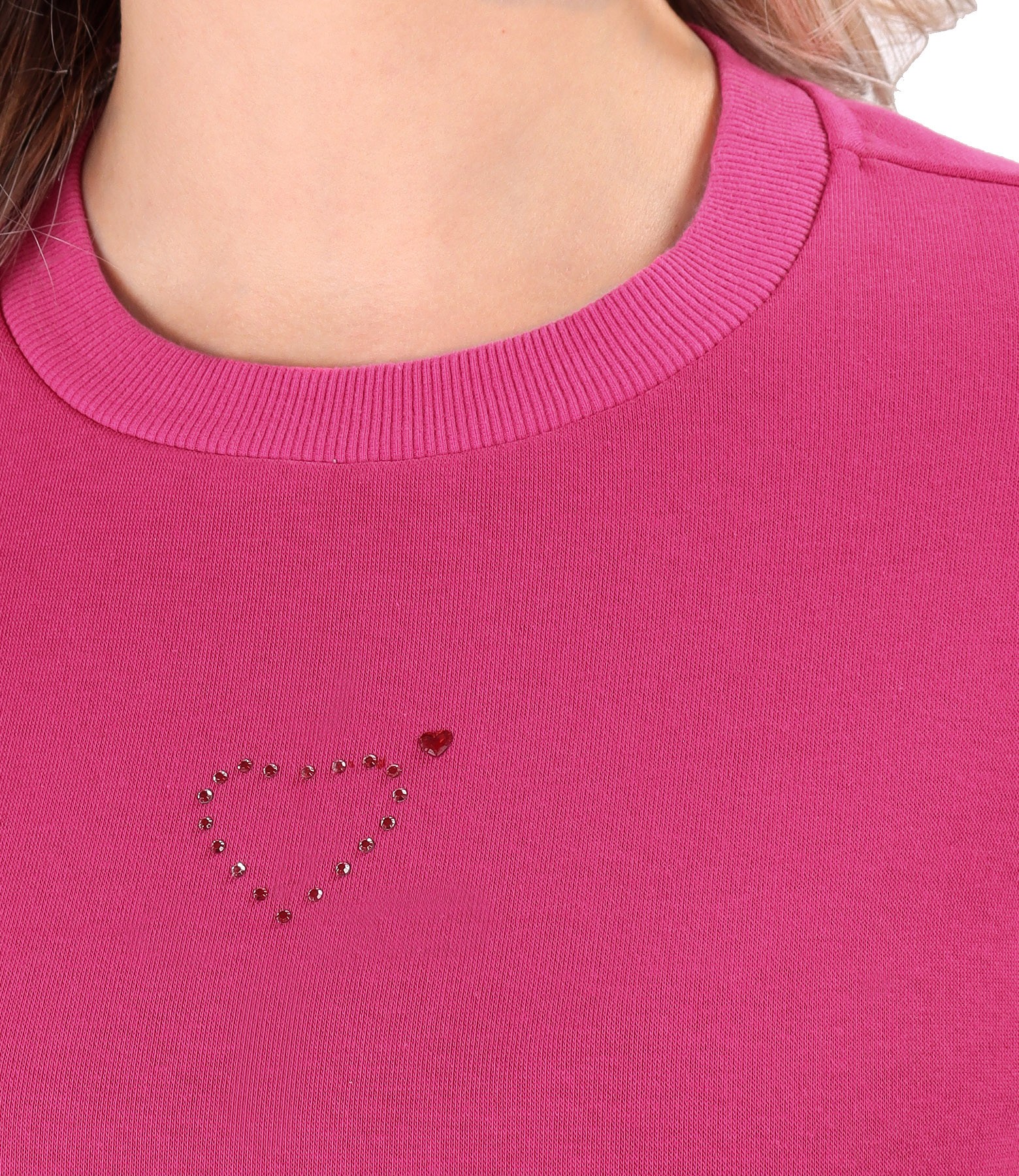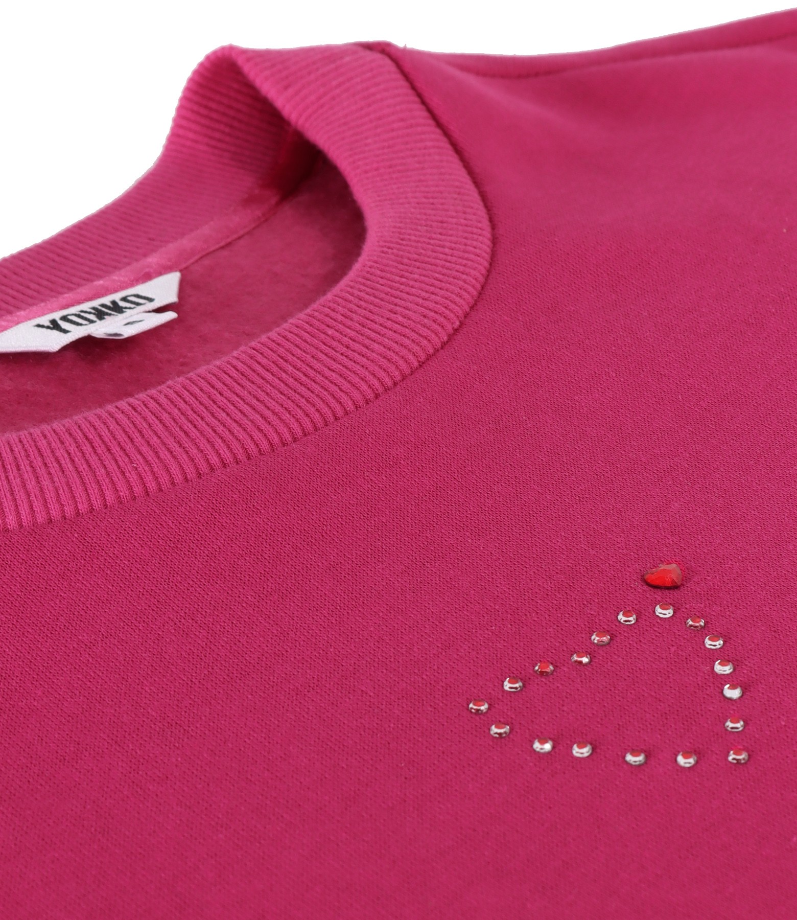 Blouse made of thick cotton with pocket on the front, long sleeves and round decolletage with crystals inserts.