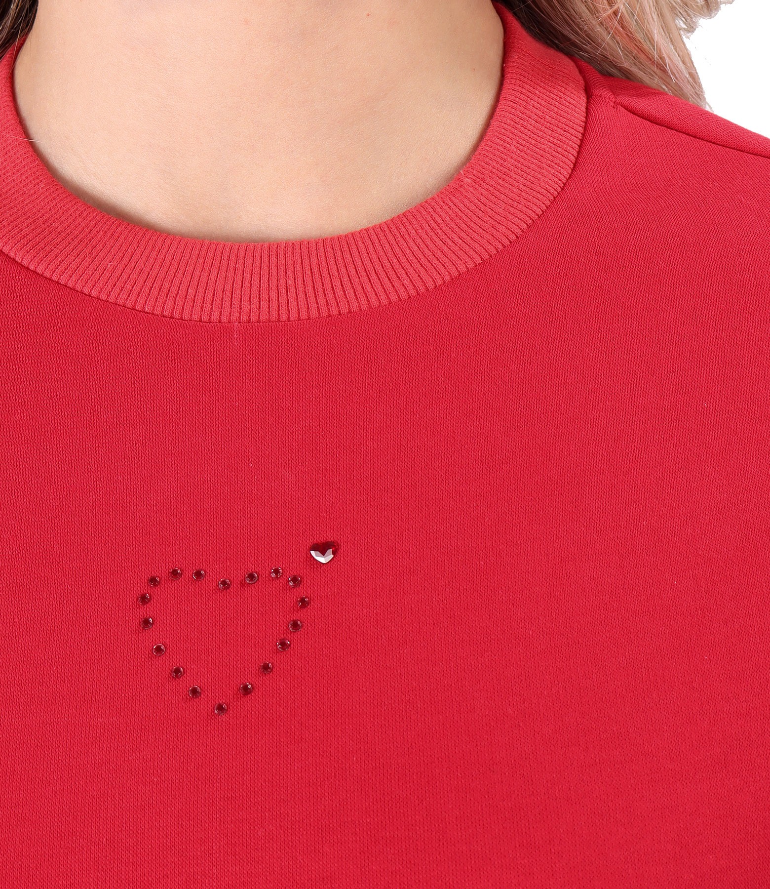 Blouse made of thick cotton with pocket on the front, long sleeves and round decolletage with crystals inserts.