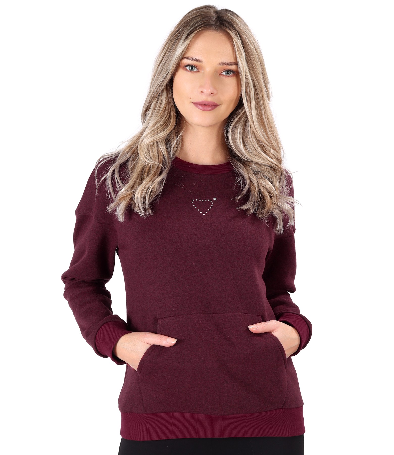 Blouse made of thick cotton with pocket on the front, long sleeves and round decolletage with crystals inserts.