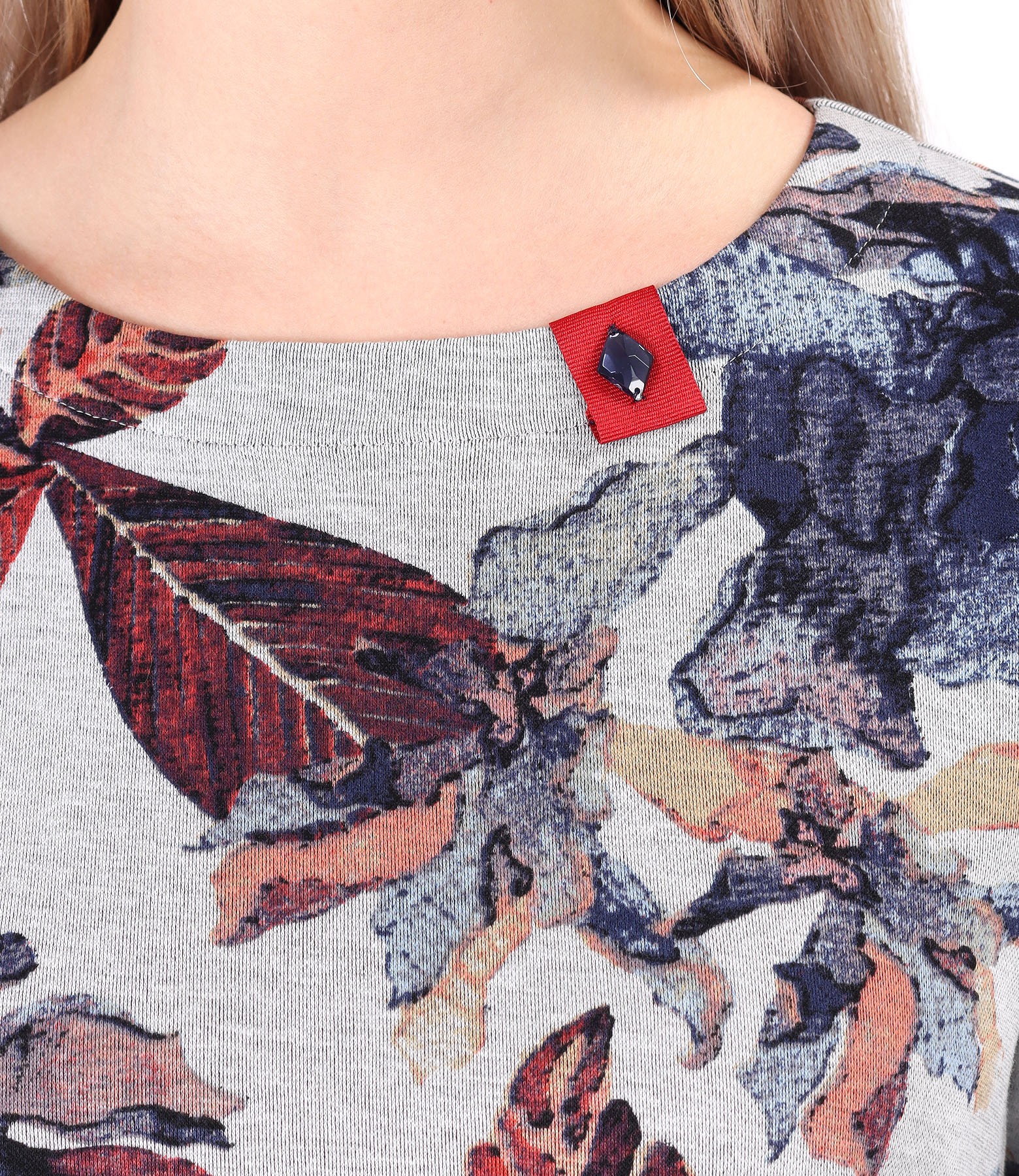 Blouse made of thick elastic jersey printed with floral motifs (Grey), size