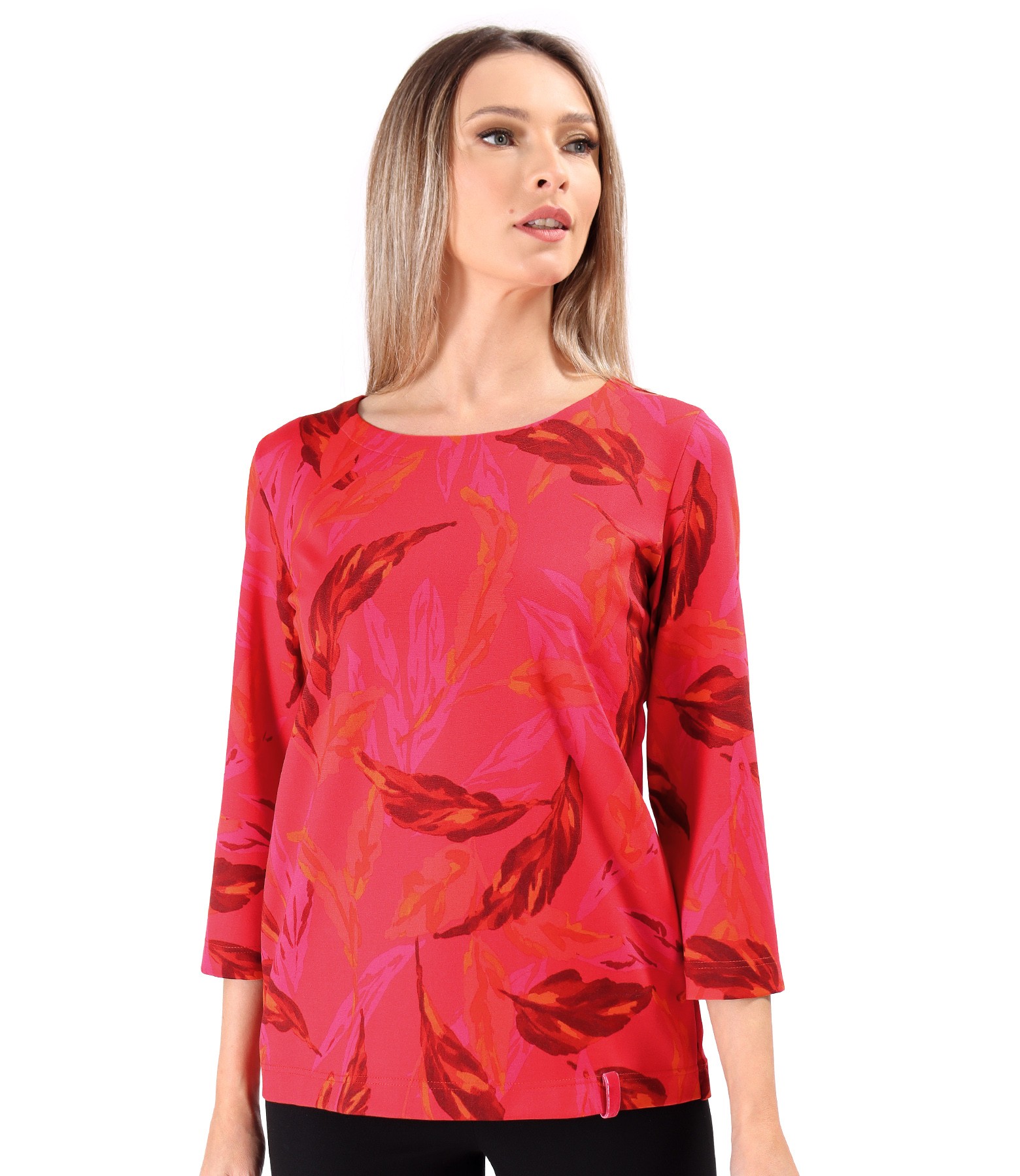Blouse made of thick elastic jersey printed with floral motifs (Coral red), size