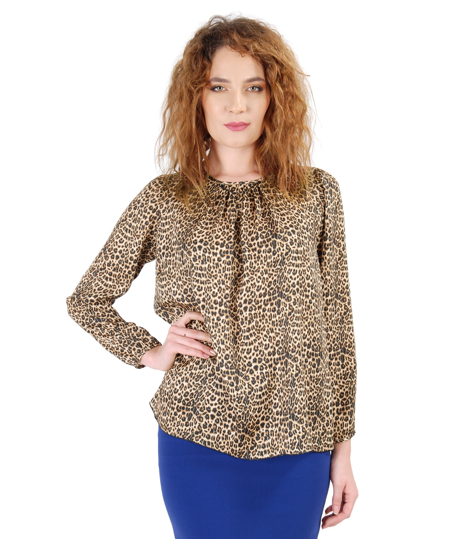 Blouse with animal print and folds on decolletage embellished with crystals (Print), size
