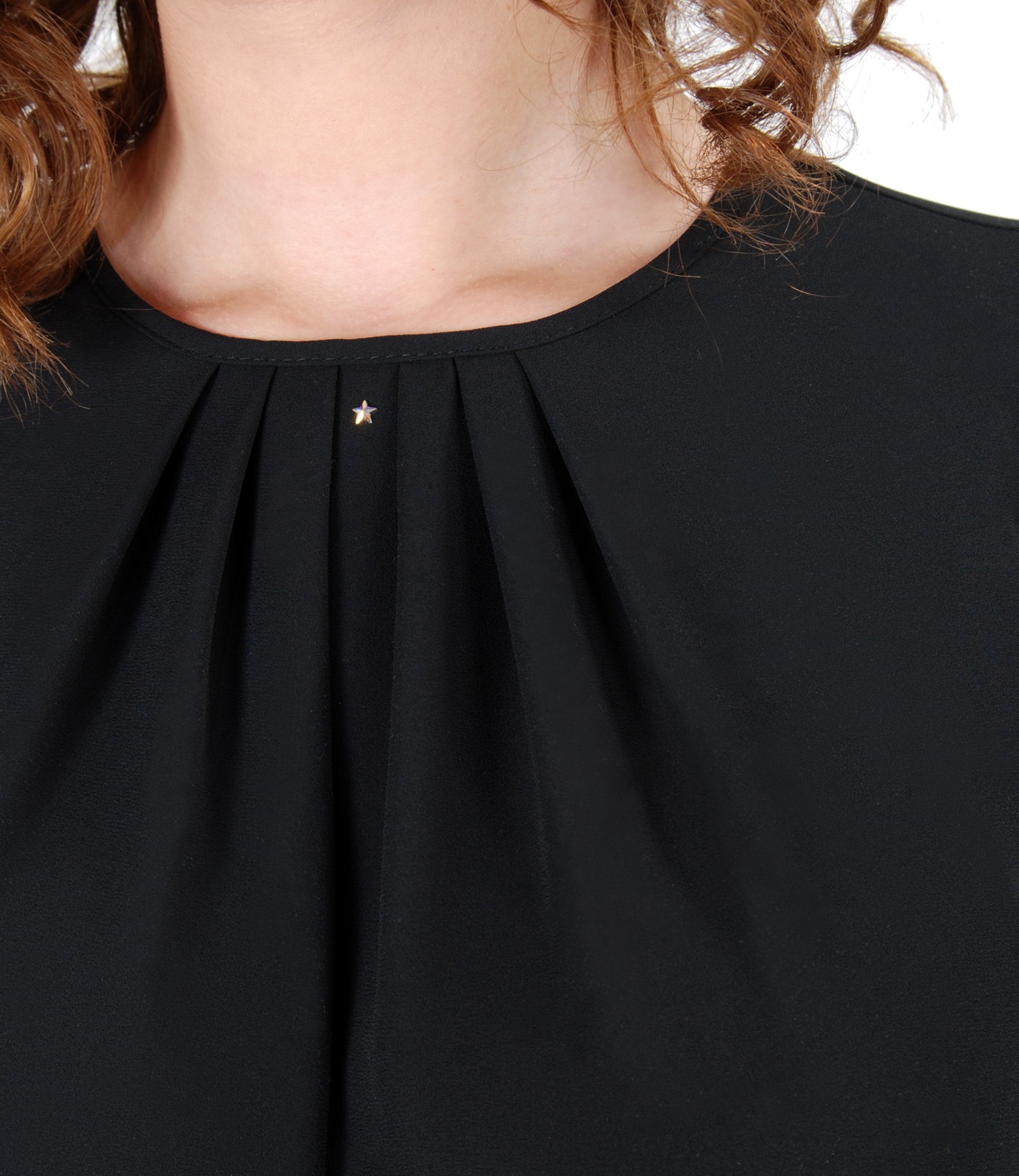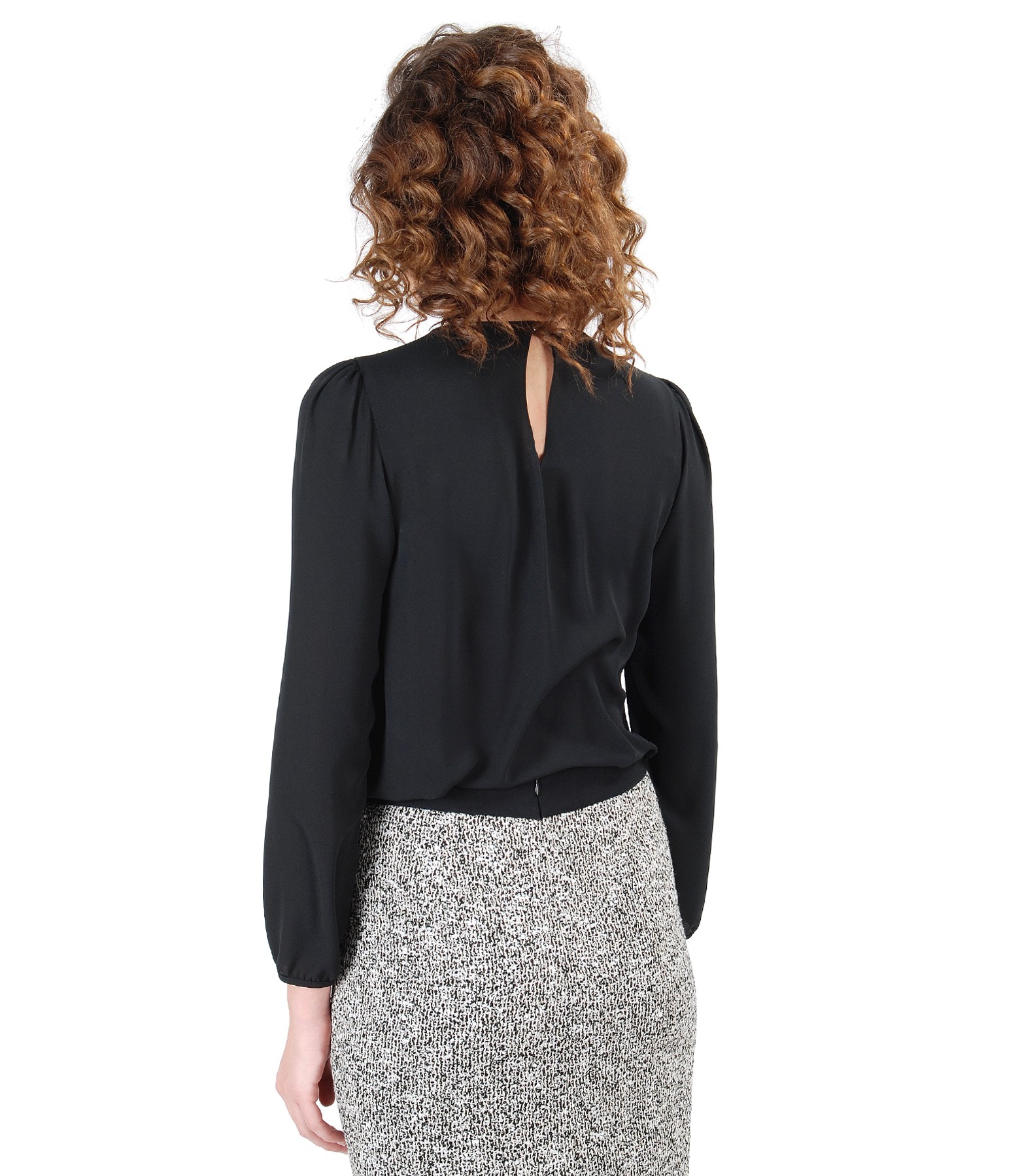 Blouse with folds on decolletage embellished with crystals (Black), size