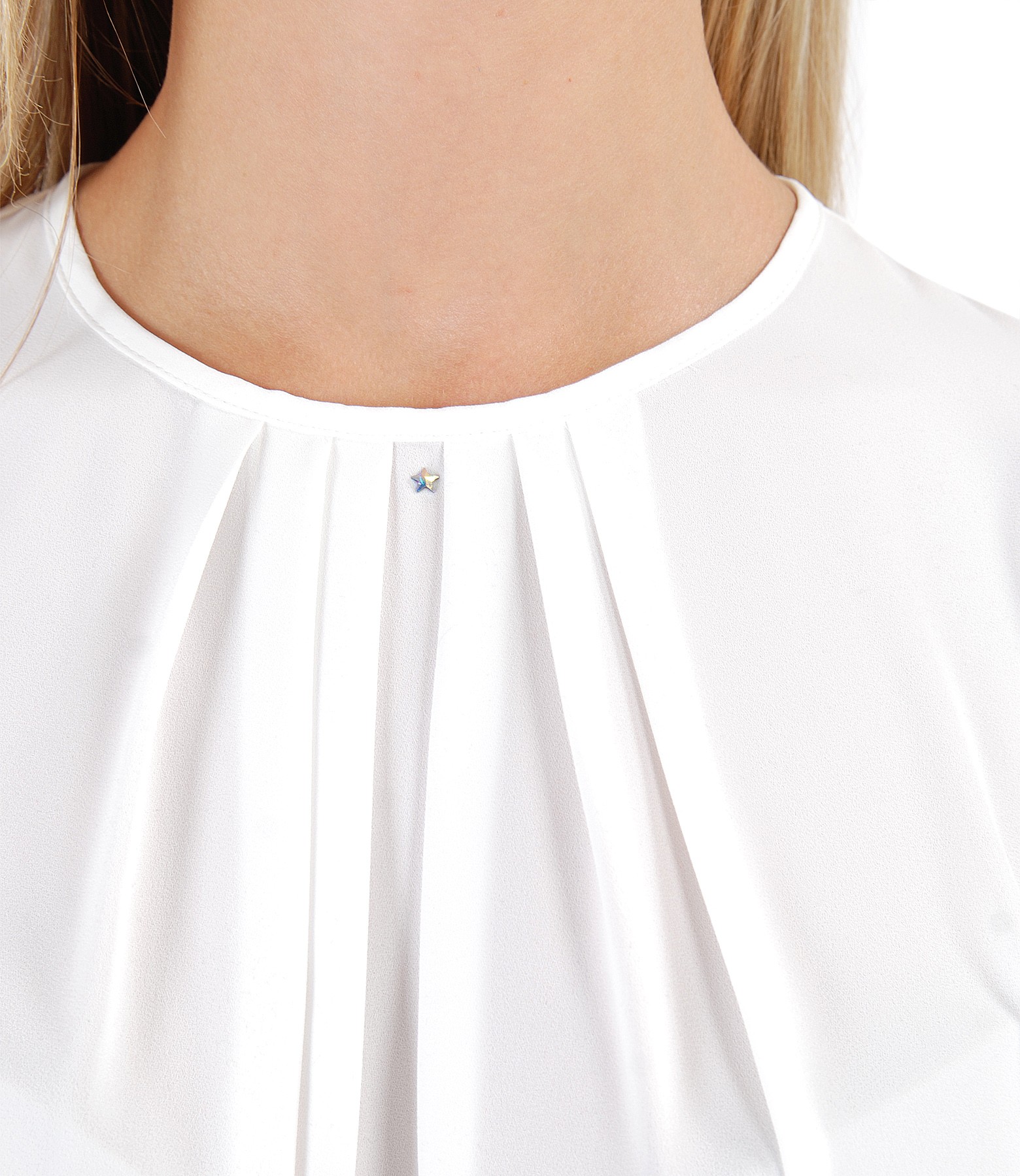 Blouse with folds on decolletage embellished with crystals