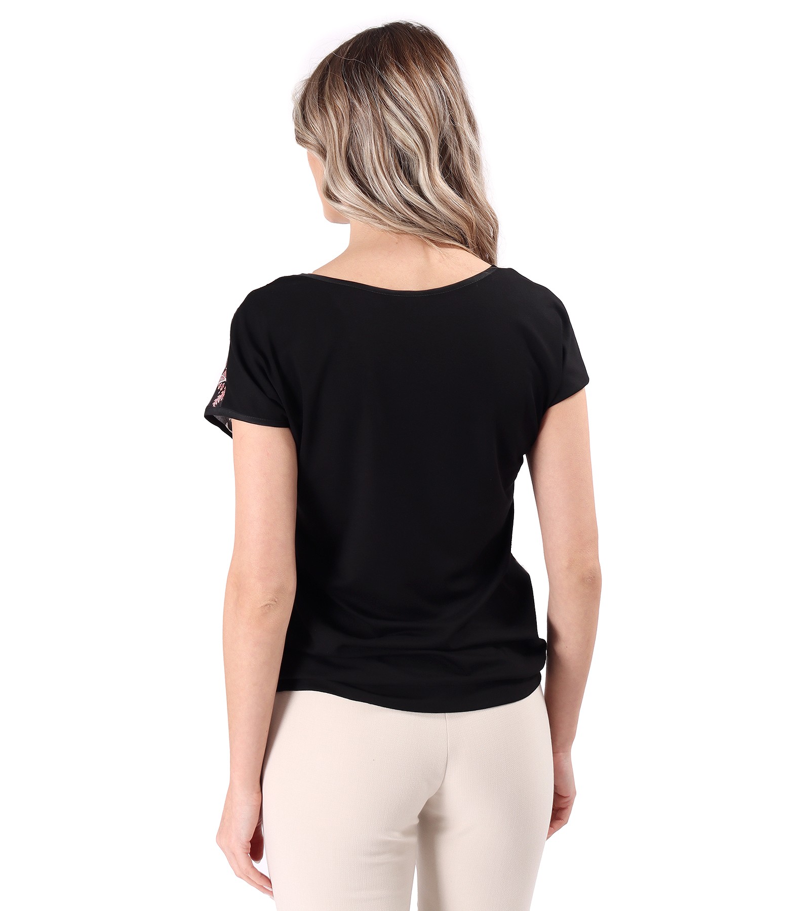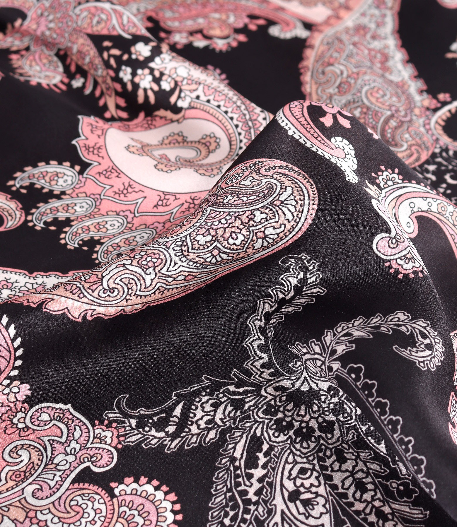 Blouse with front made of natural silk printed with paisley motifs (Somon pink), size