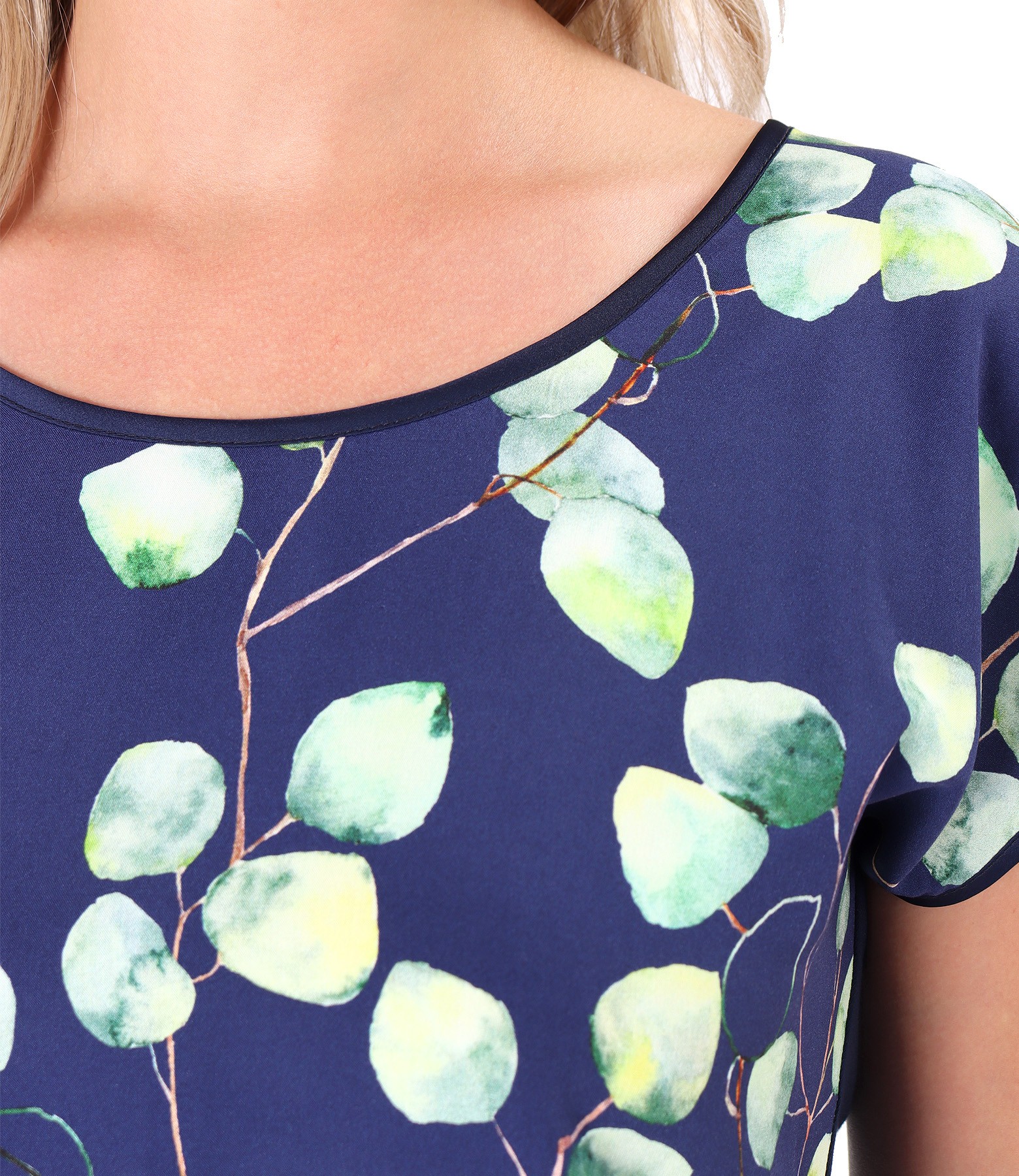 Blouse with front made of viscose printed with flowers (Navy Blue), size