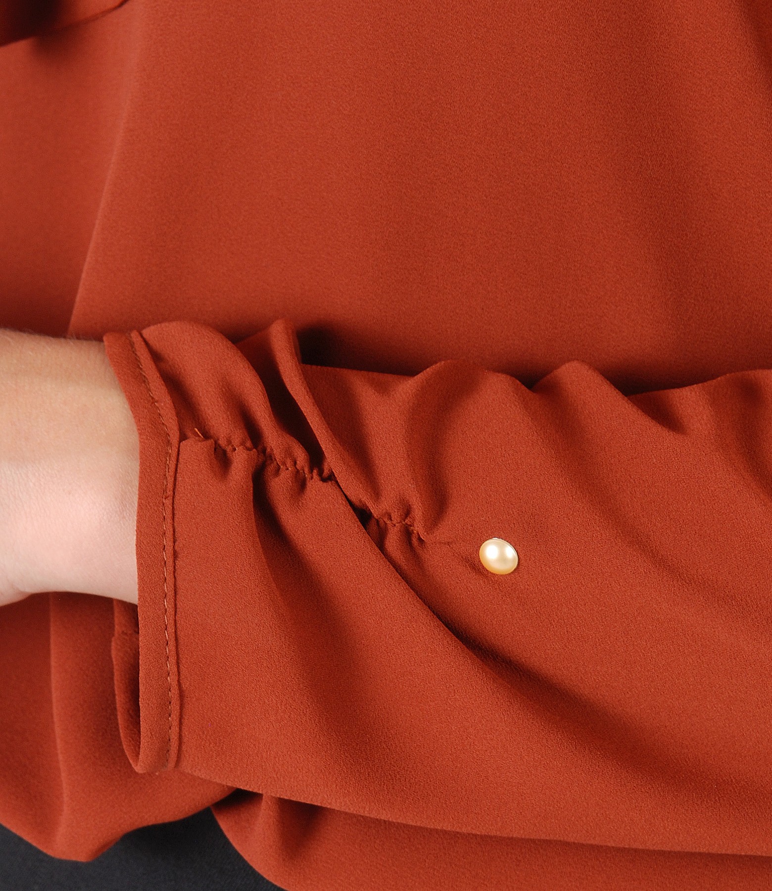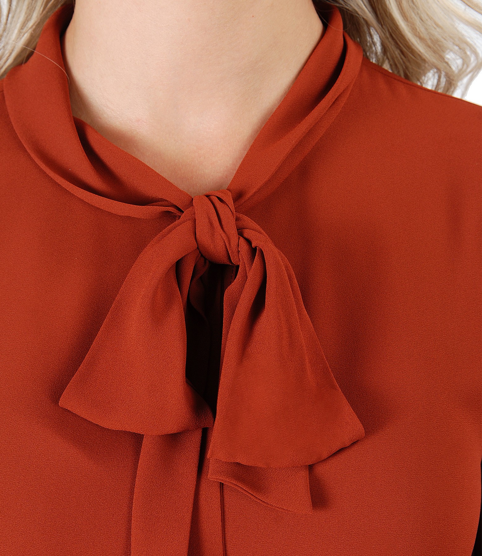 Blouse with long sleeves and scarf collar (Brick Red), size