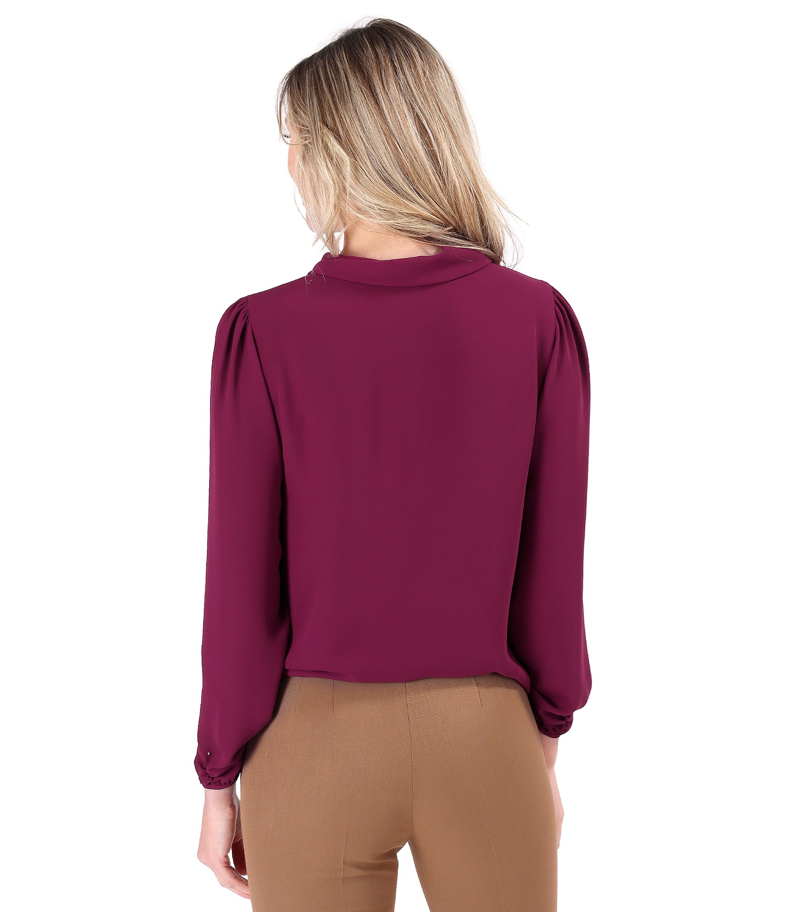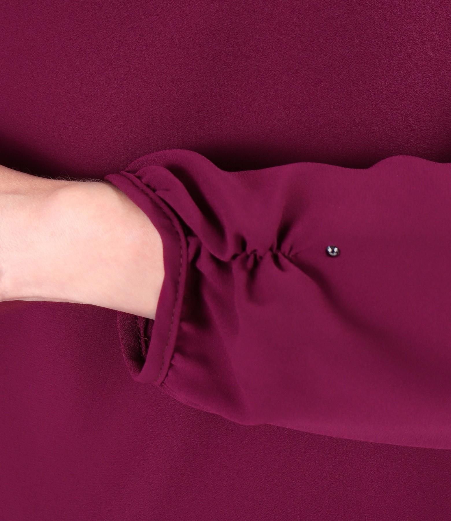 Blouse with long sleeves and scarf collar, embellished with crystals on the sleeve edge.