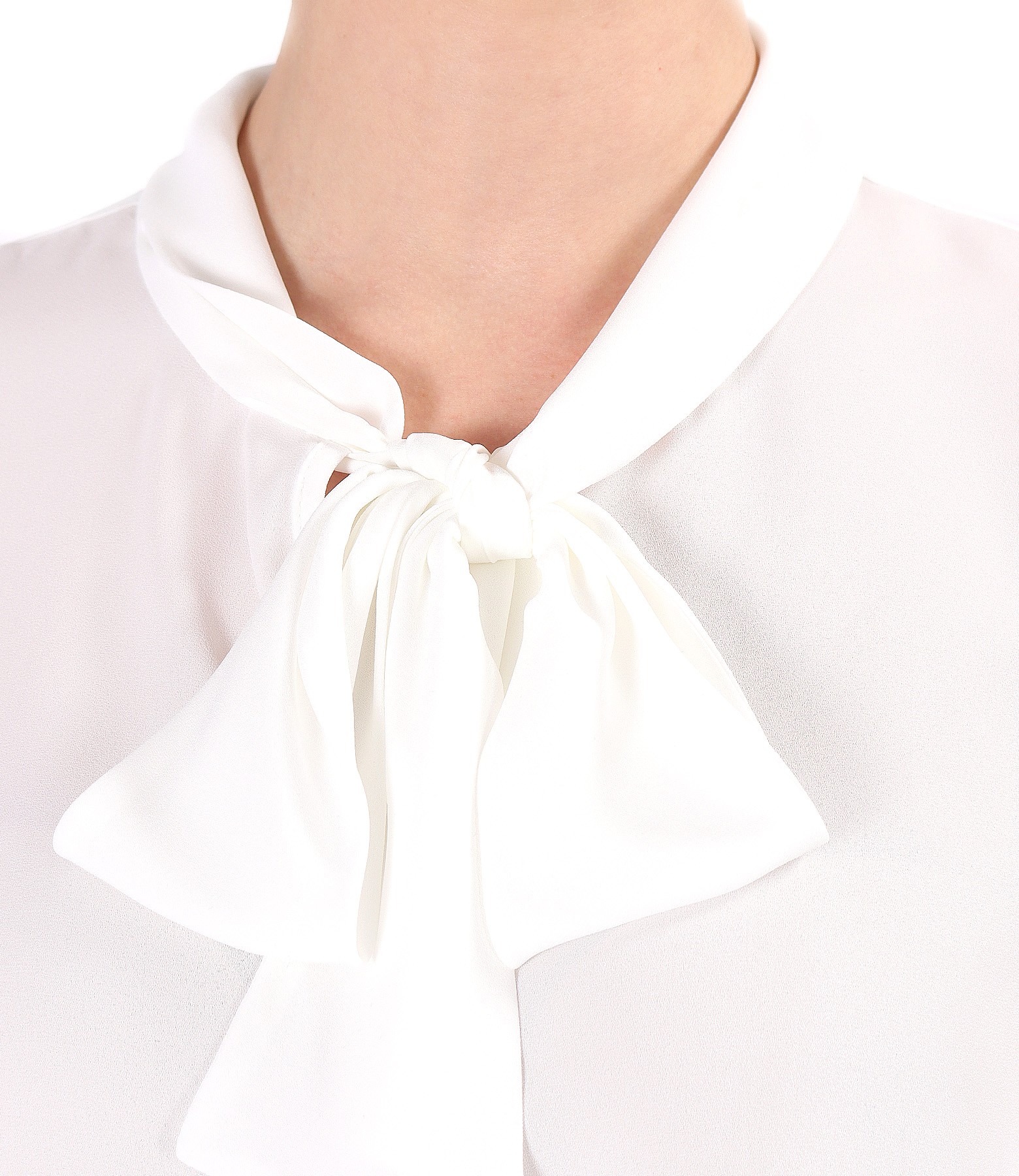 Blouse with long sleeves and scarf collar, embellished with crystals on the sleeve edge.