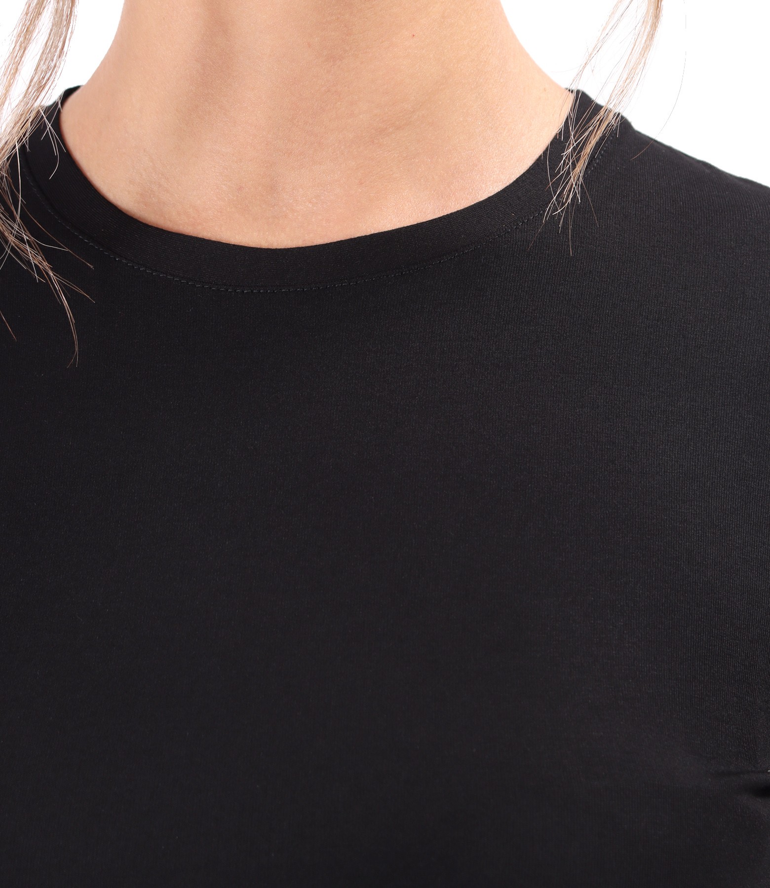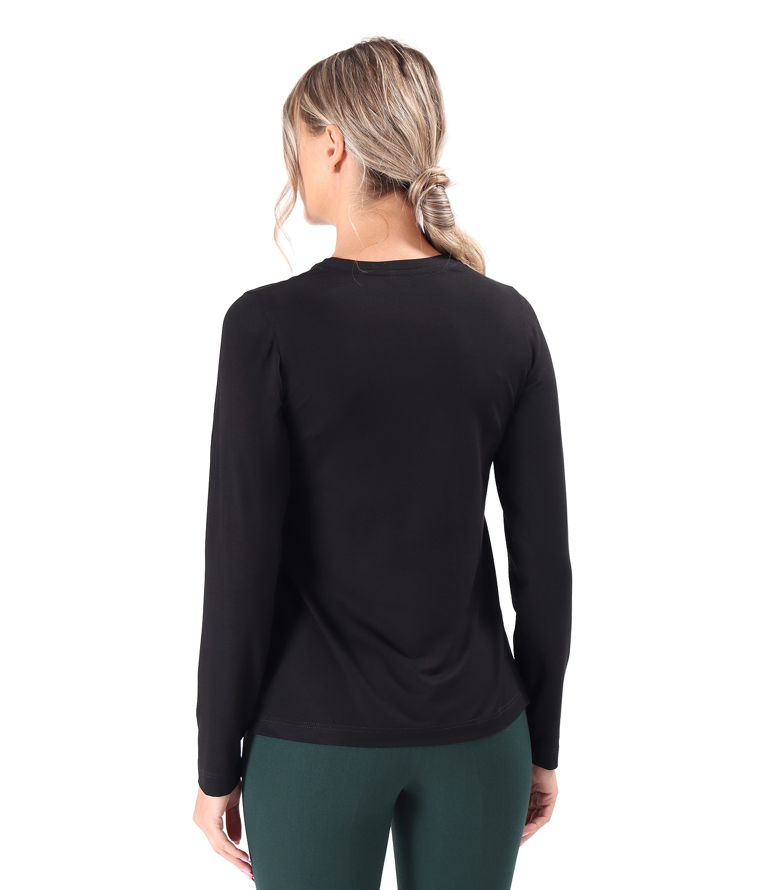 Blouse with long sleeves made of elastic jersey, round neckline with golden elastic trim.