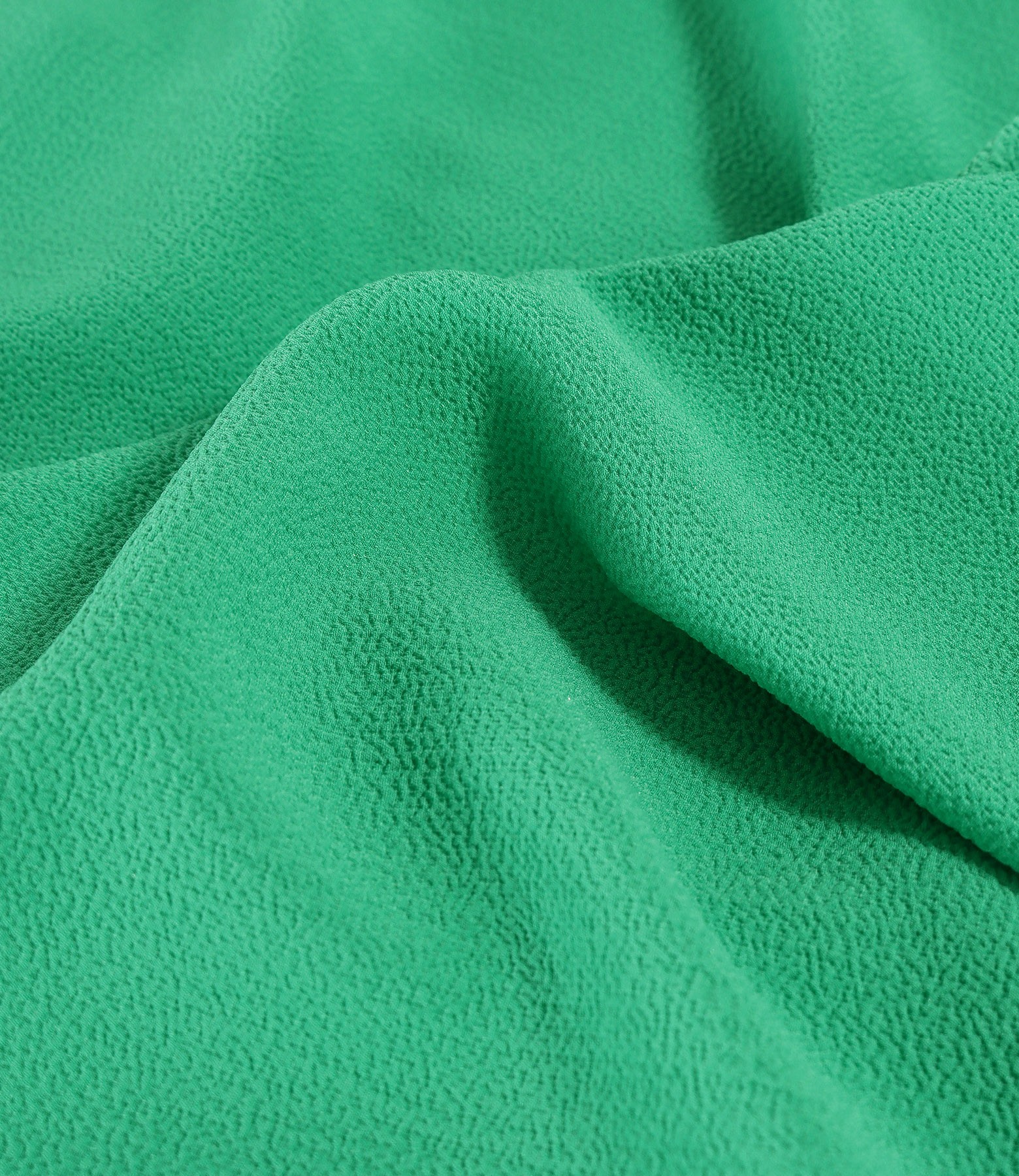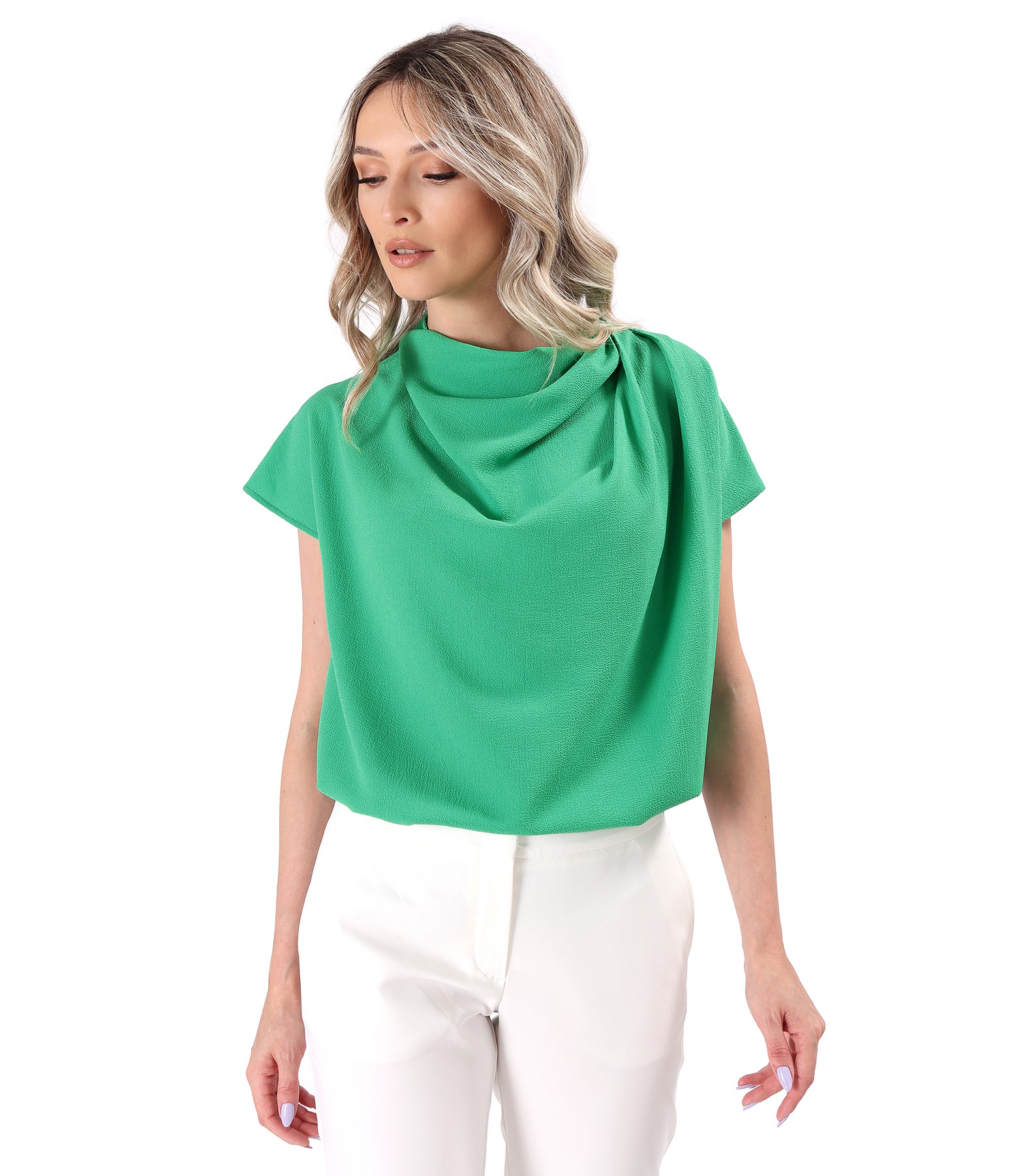 Blouse with pleats on the left shoulder and short sleeves. It closes with a zipper in the middle of the back.