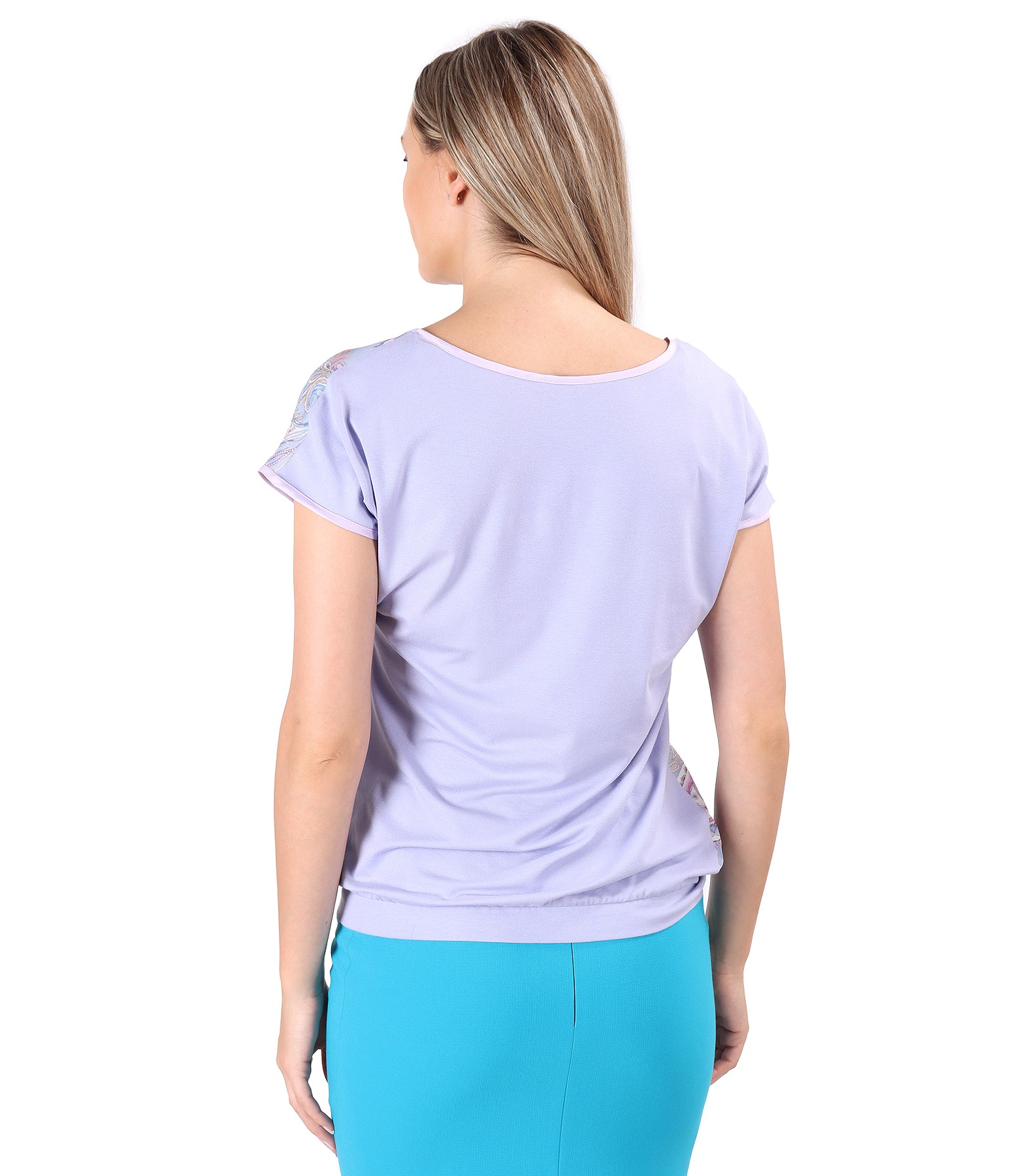 Blouse with viscose front printed with paisley motifs (Light Blue), size