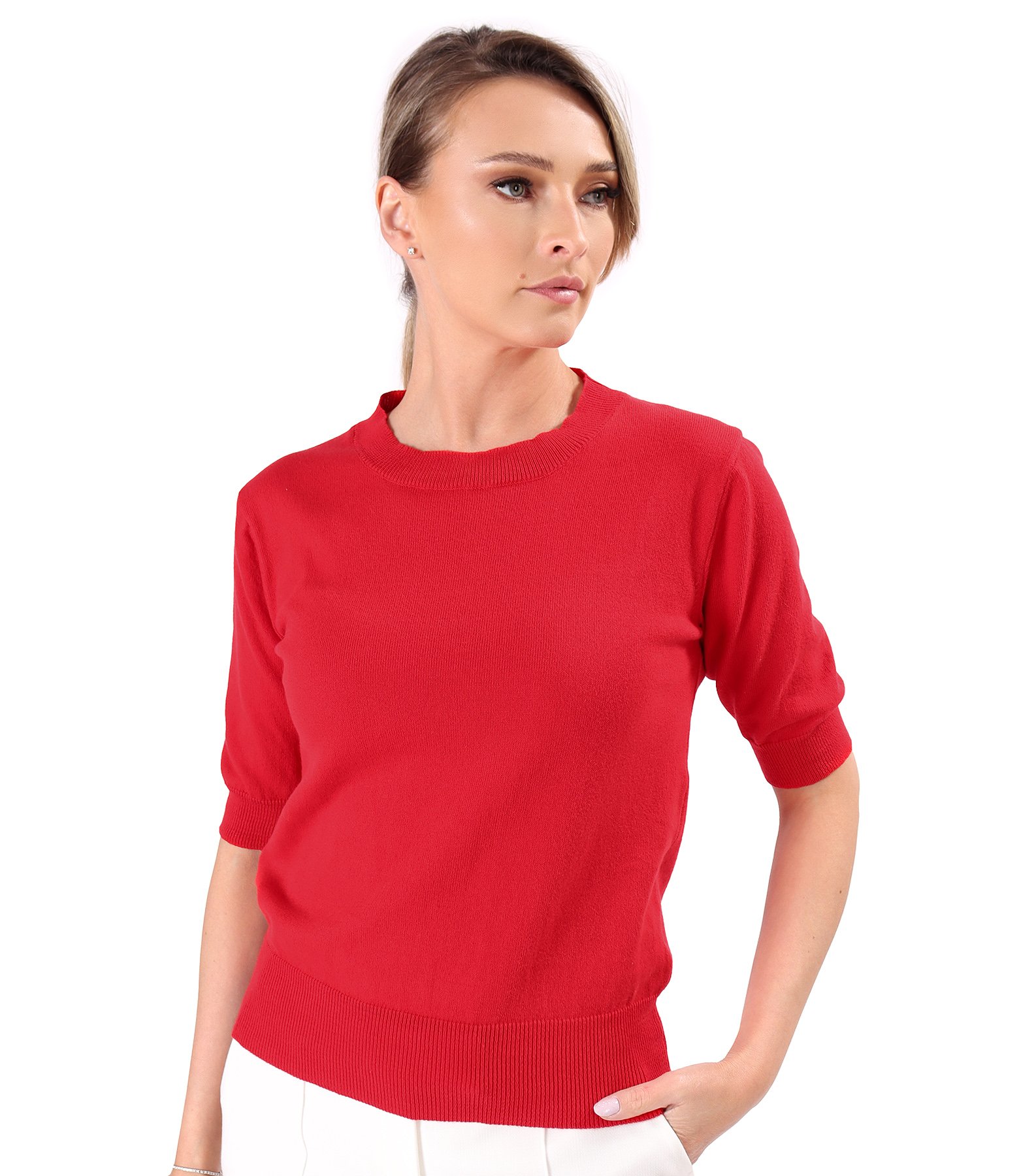 Bluza tricotata fin din bumbac cu maneci scurte (Red), size