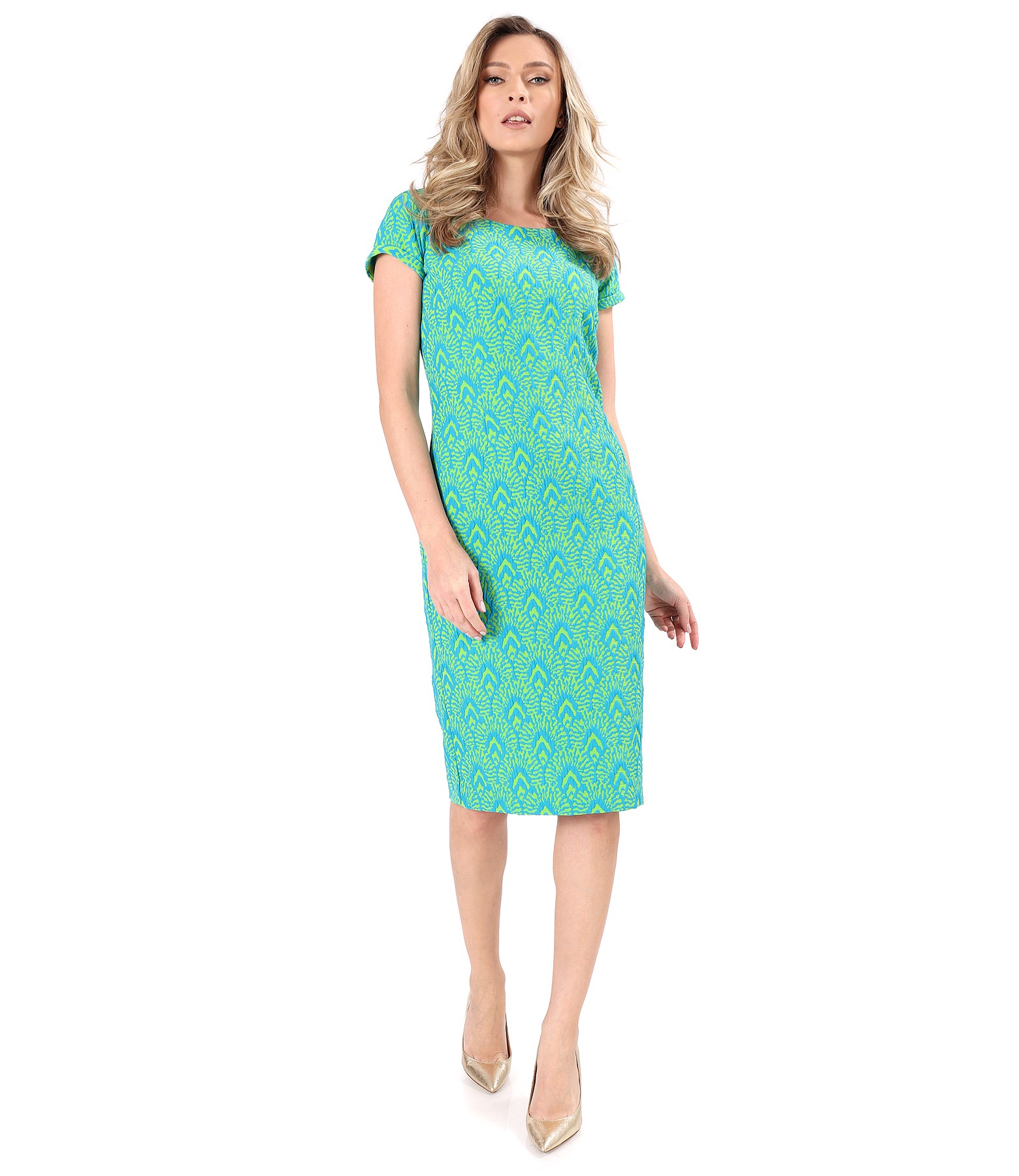 Brocade midi dress with cotton and viscose (Turquoise), size