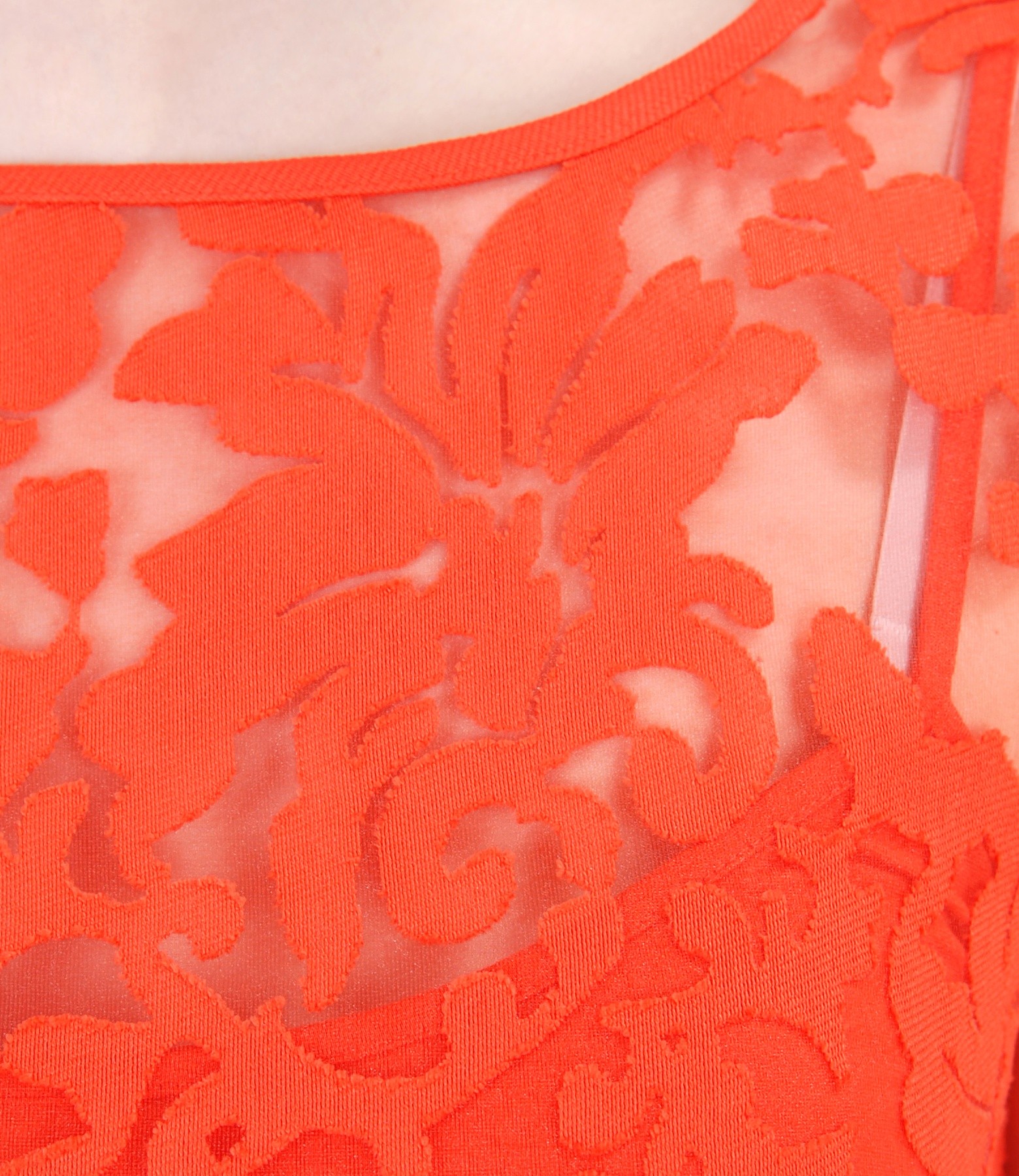 Brocade organza dress with viscose motifs and flax (Coral red), size