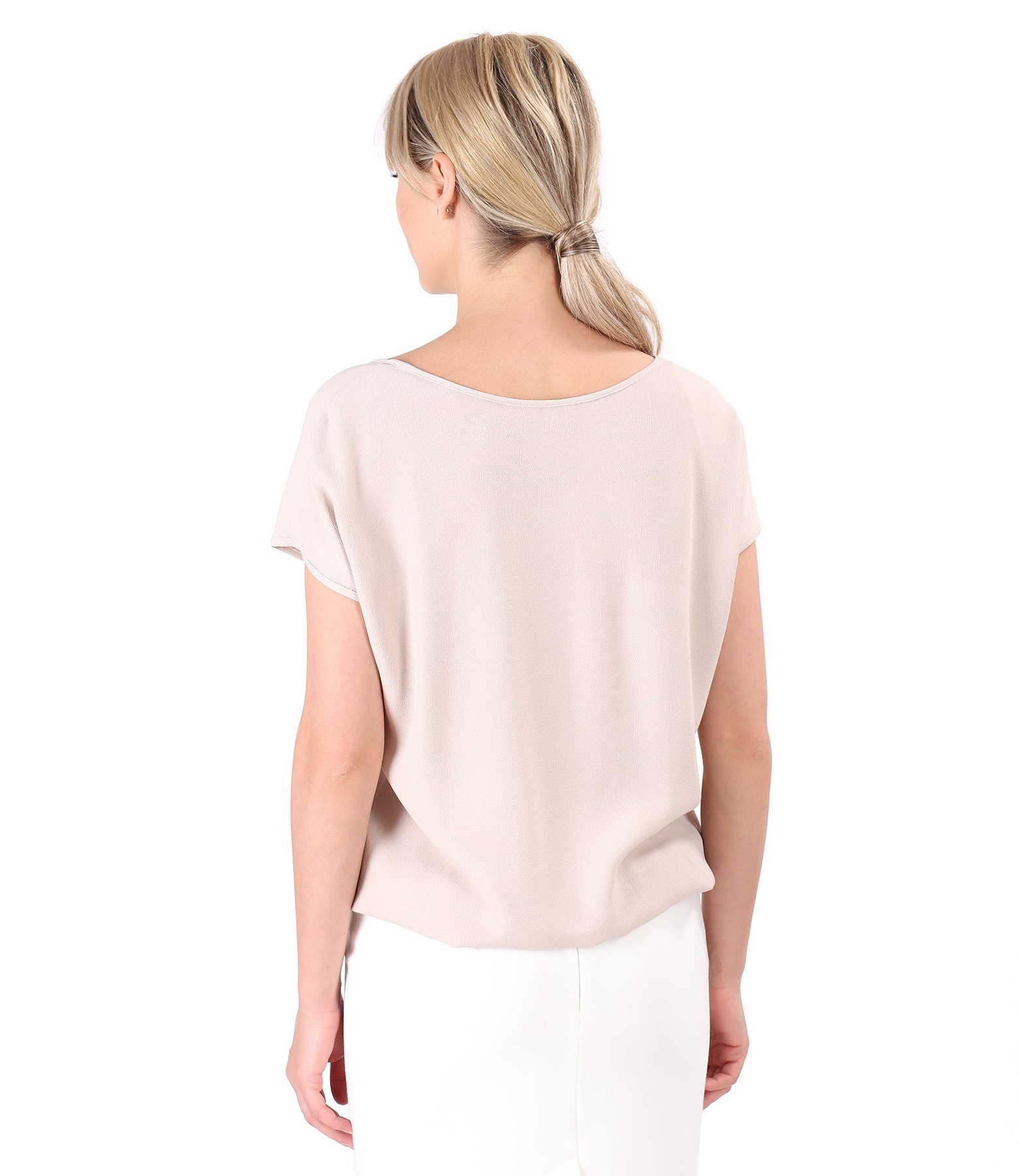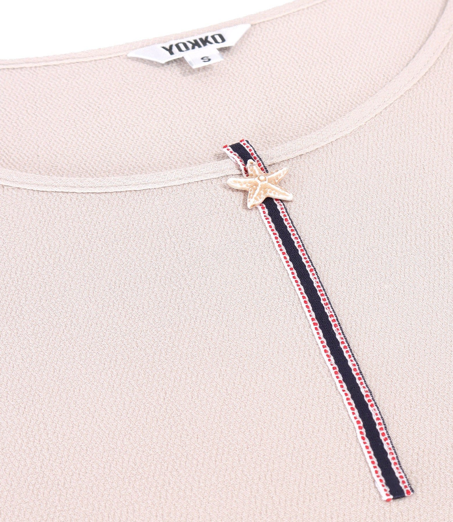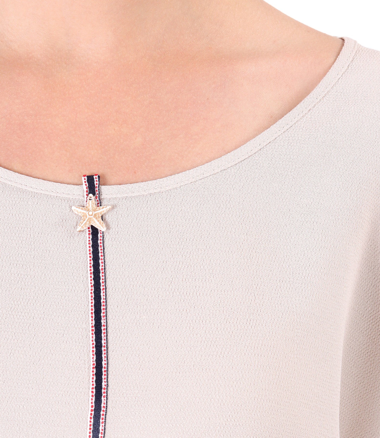 Casual blouse made of uni viscose, with dropped sleeves, with round neckline with rips band and a decorative sea star and elastic at the end.