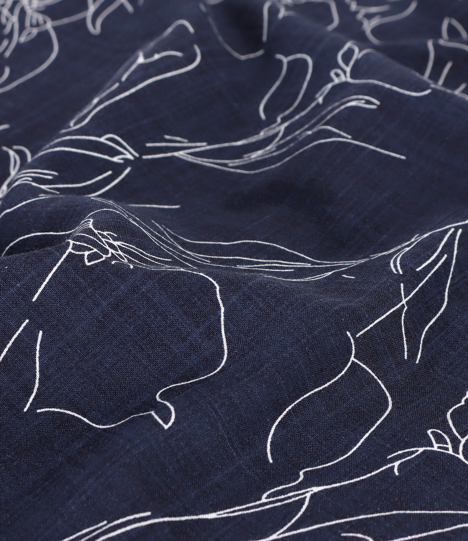 Casual cotton dress with viscose printed with floral motifs, doubled with viscose, with 3/4 sleeves and round neckline. It closes with a zipper hidden in the middle of the back.