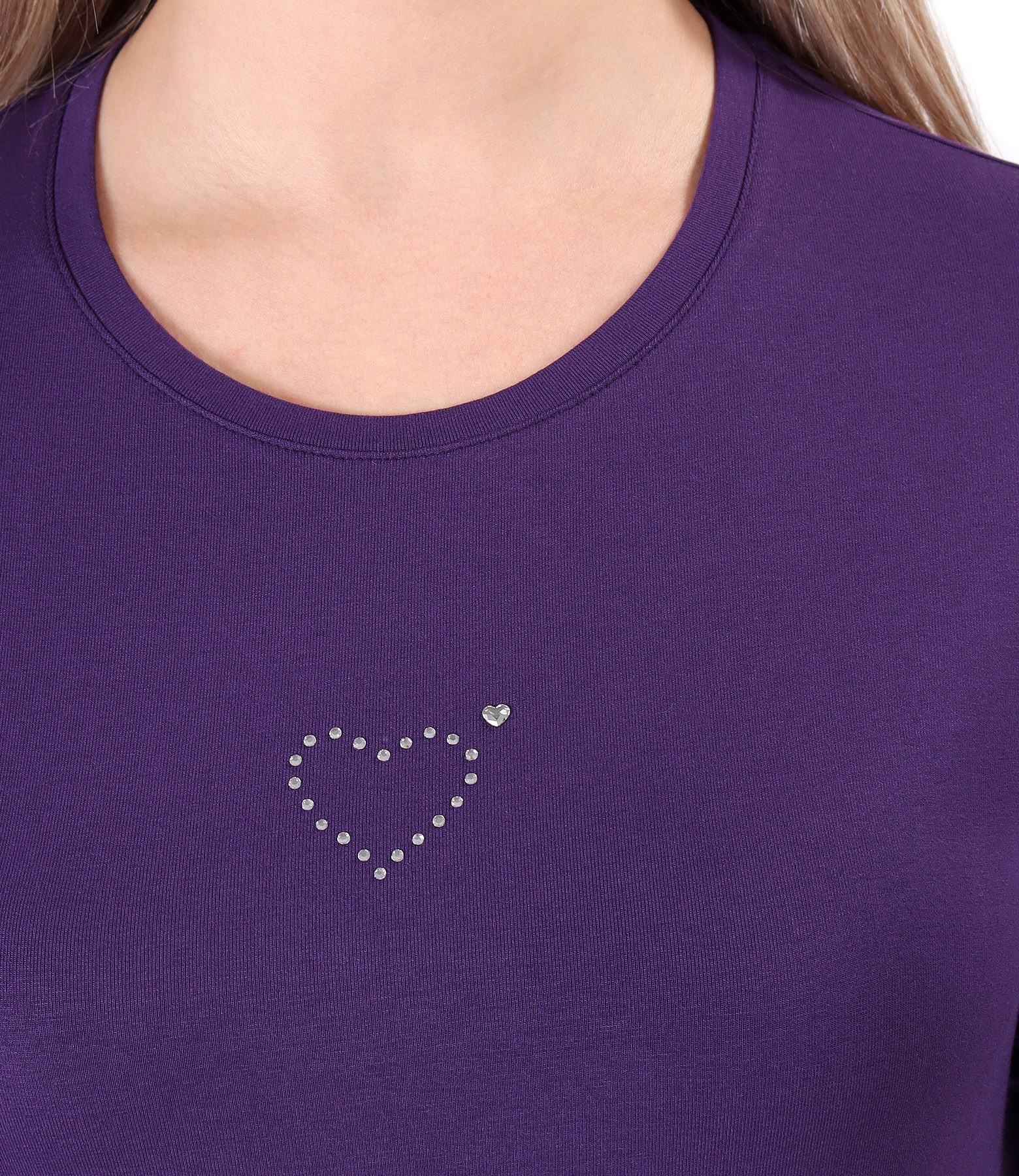 Casual dress made of elastic jersey, unlined, with round decolletage, short sleeves and decorative application in the shape of a heart on the face.