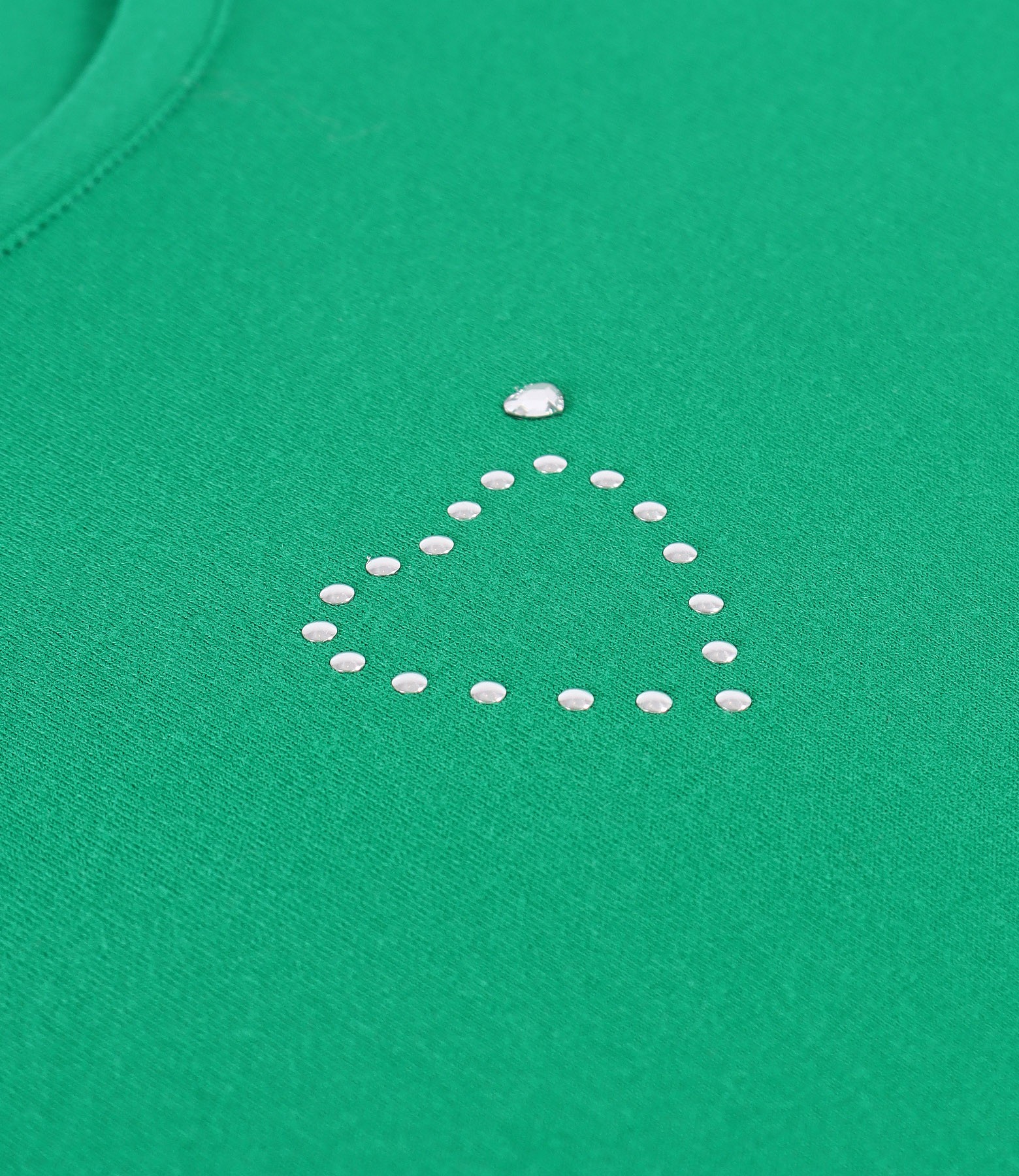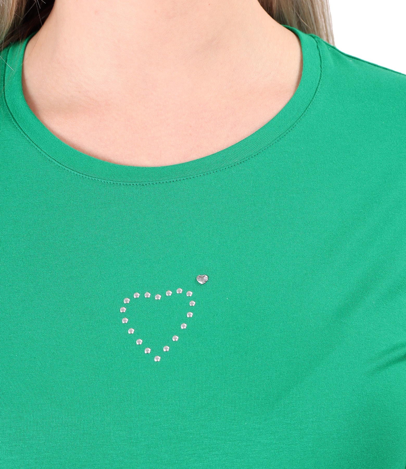 Casual dress made of elastic jersey, unlined, with round decolletage, short sleeves and decorative application in the shape of a heart on the face.