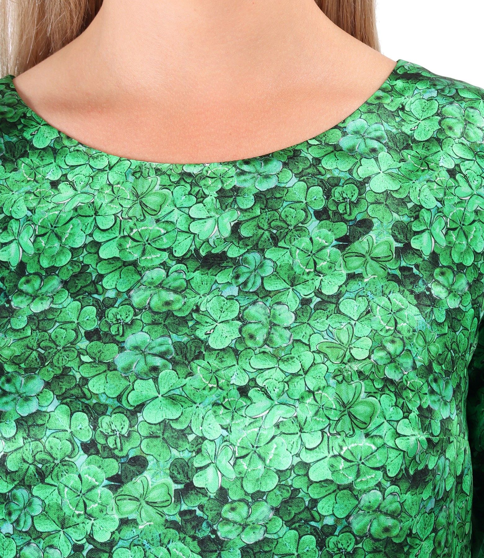 Casual dress made of natural silk with floral motifs (Green), size