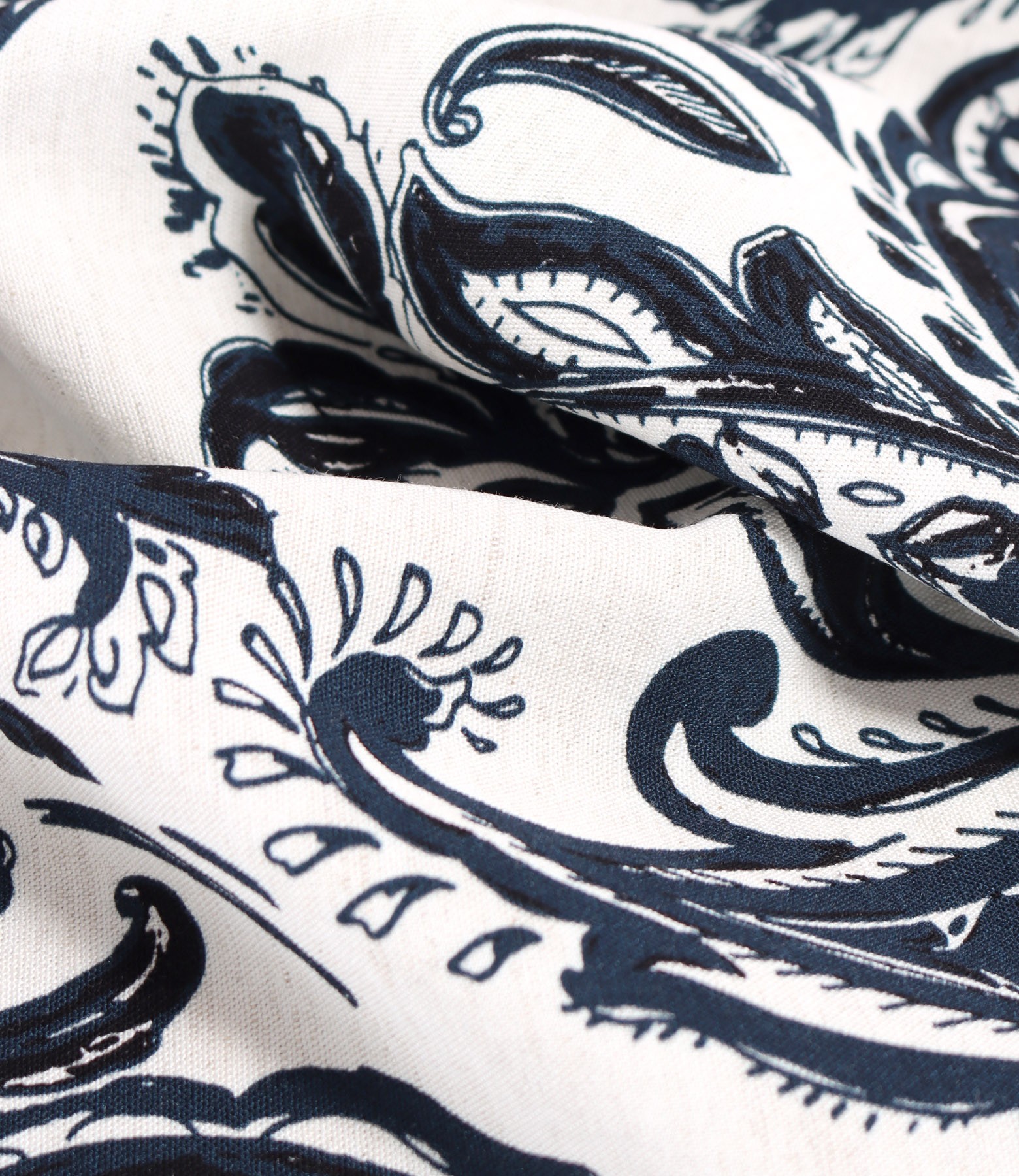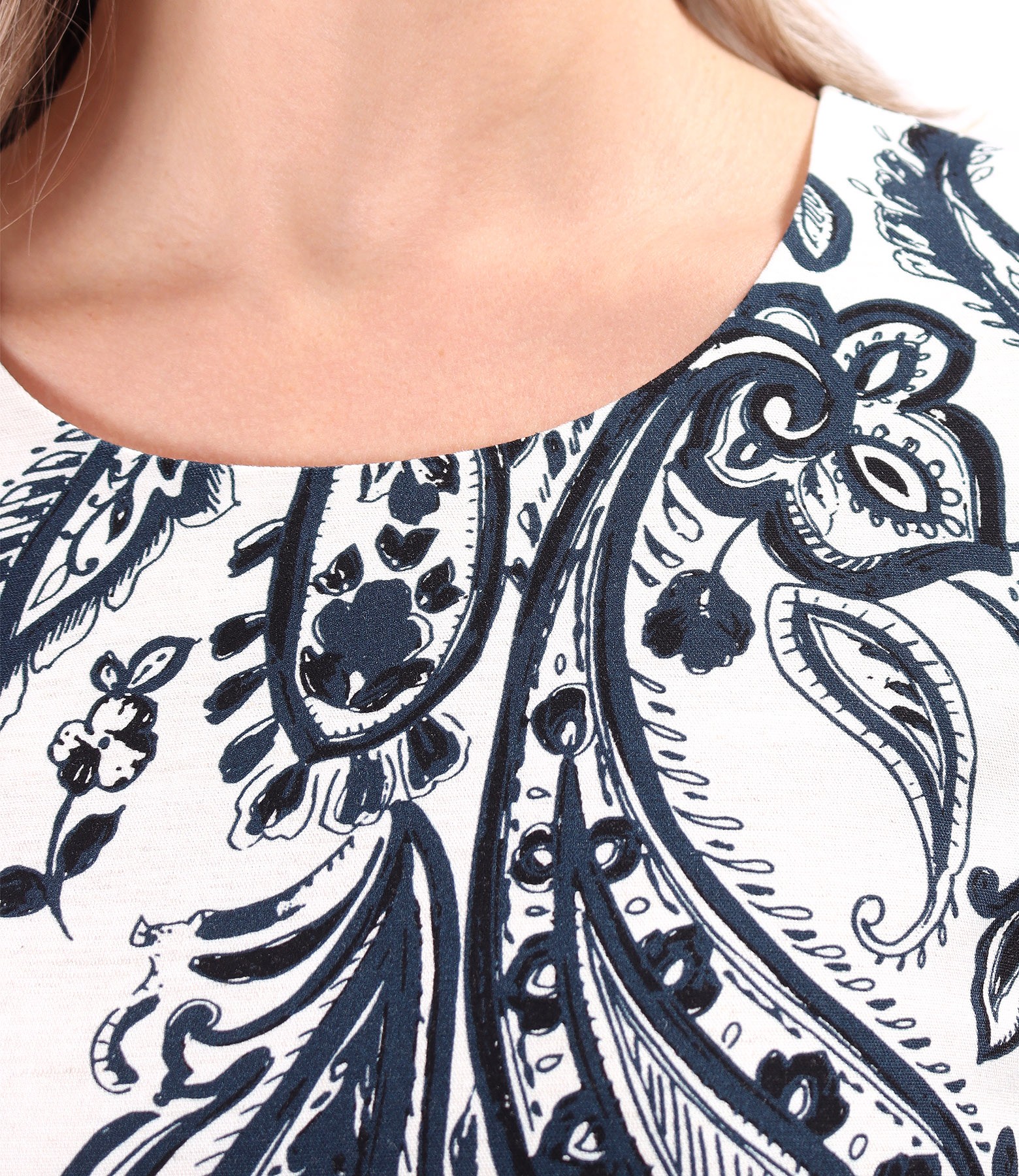 Casual dress made of viscose with linen printed with paisley motifs (Navy blue), size