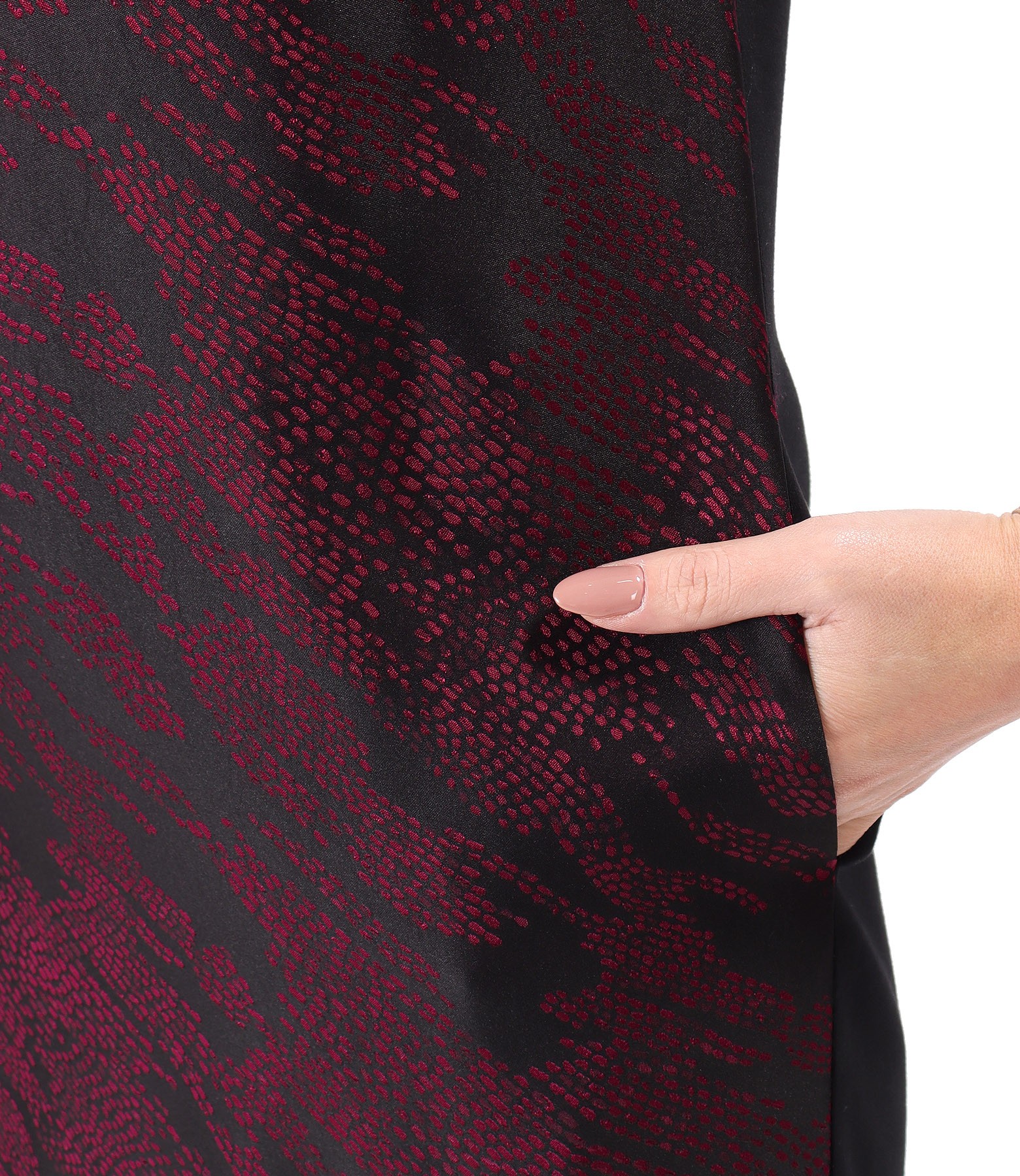 Casual dress with a viscose satin jacquard front with geometric motifs (Garnet Red), size