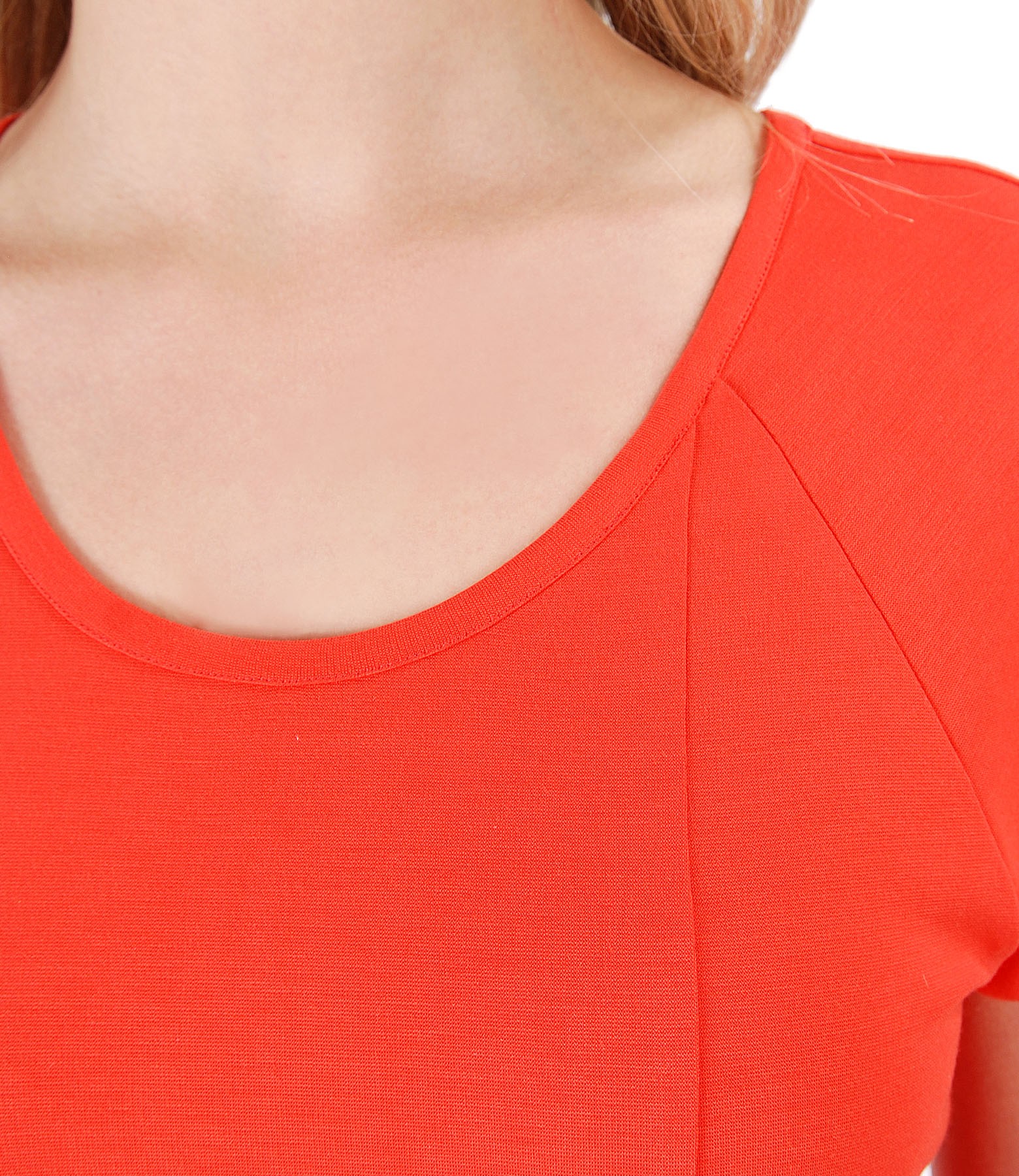 Casual dress, unlined , with short sleeves and veil pockets with rips band. Have no closing system.