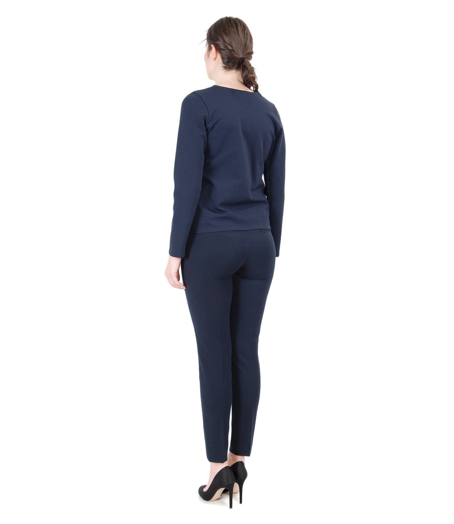 Casual outfit with elastic printed jersey blouse and tapered trousers (), size