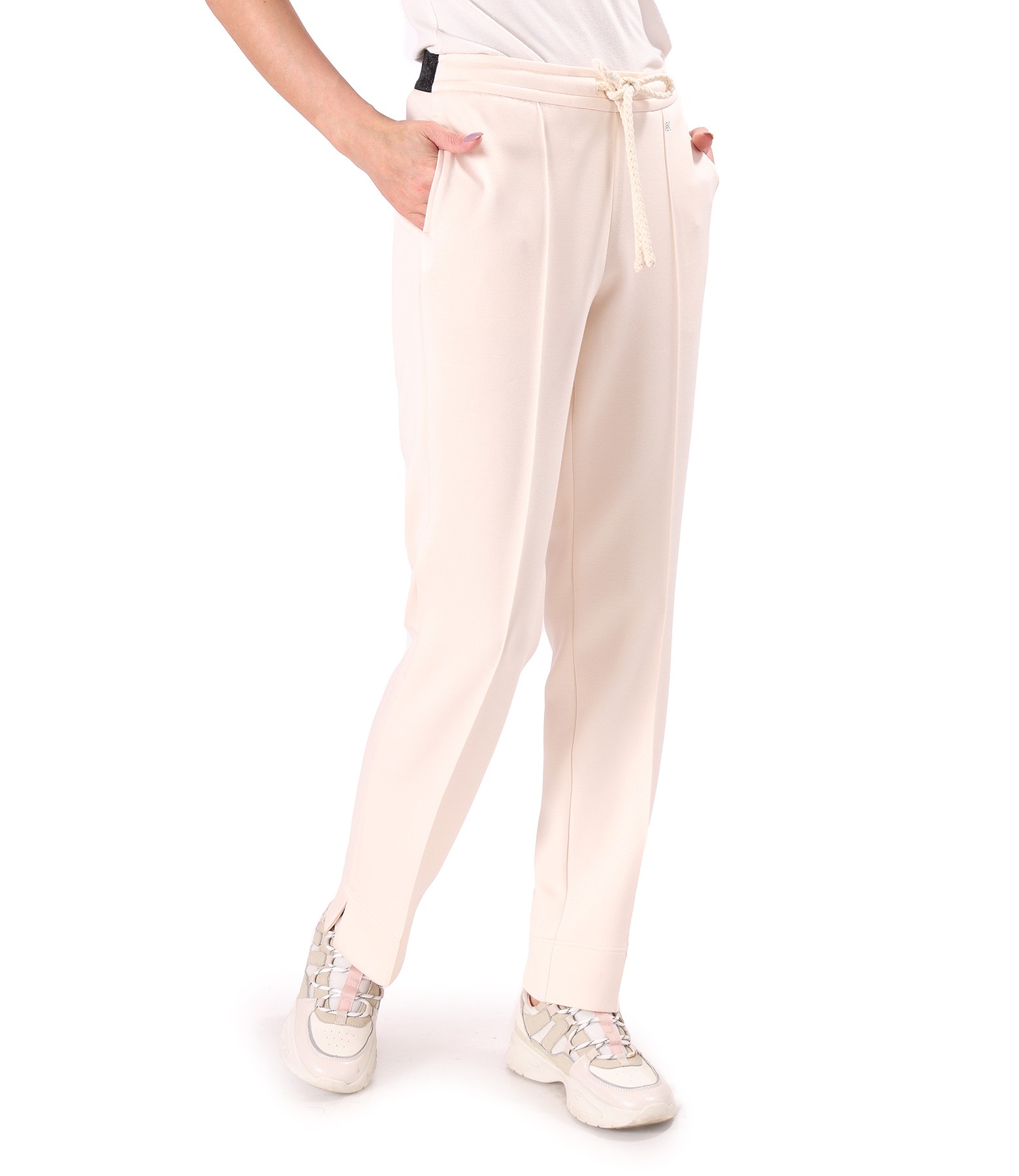 Casual pants made of scuba fabric with viscose, with elastic drawstring waist and side pockets.