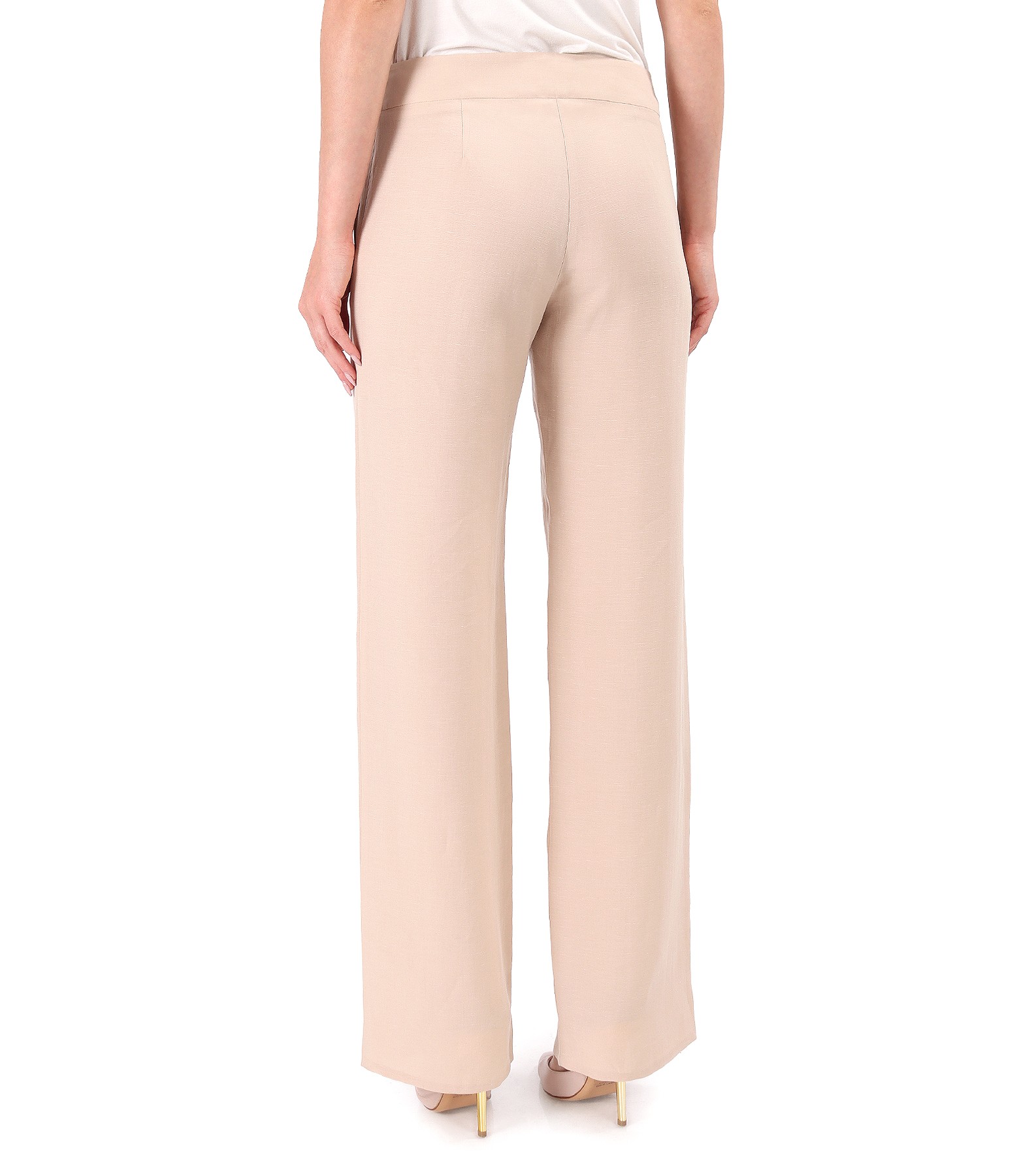 Casual tencel and linen pants, with side pockets and wide drawstring at the waist. It closes with a hidden zipper on the left side.