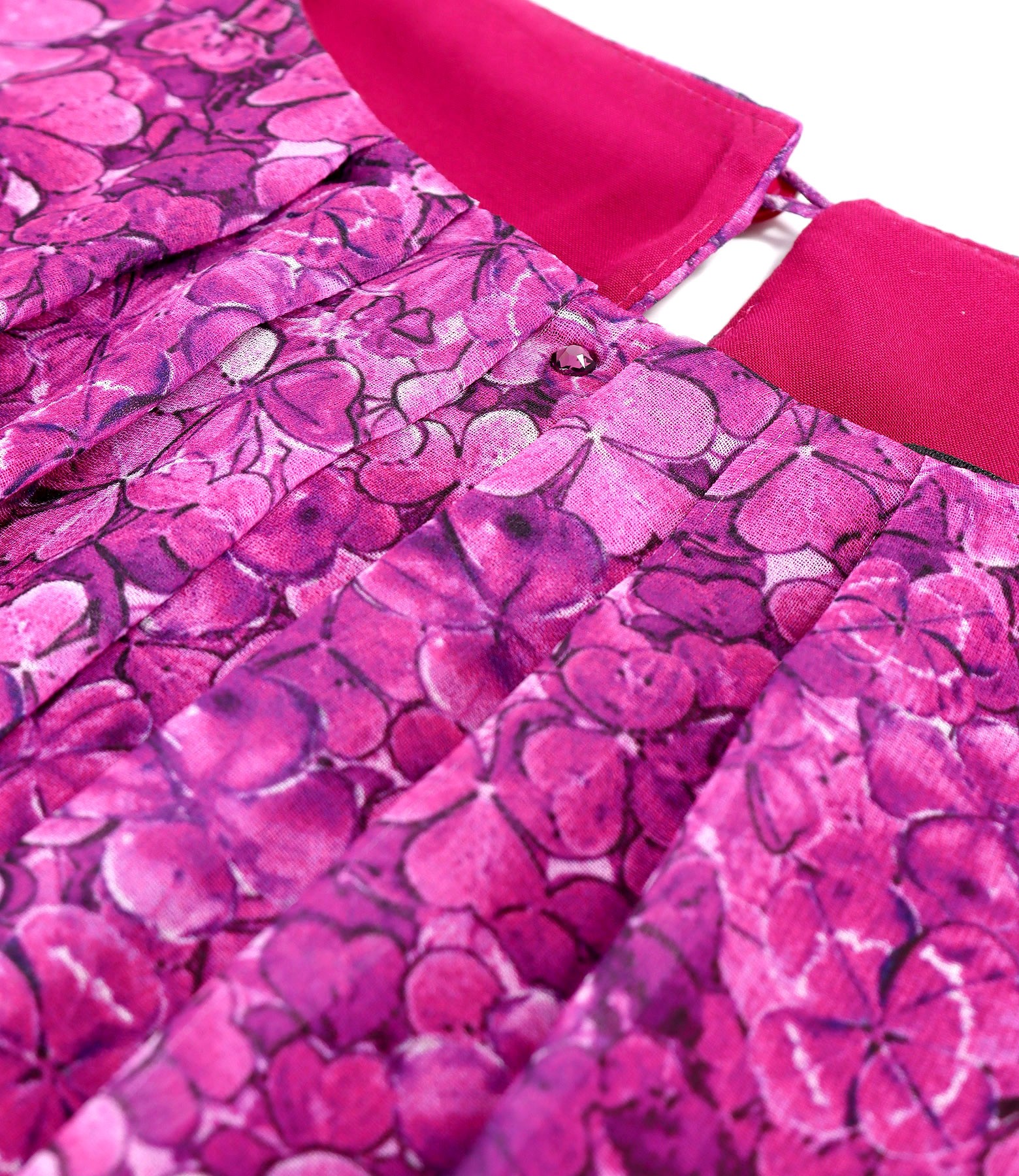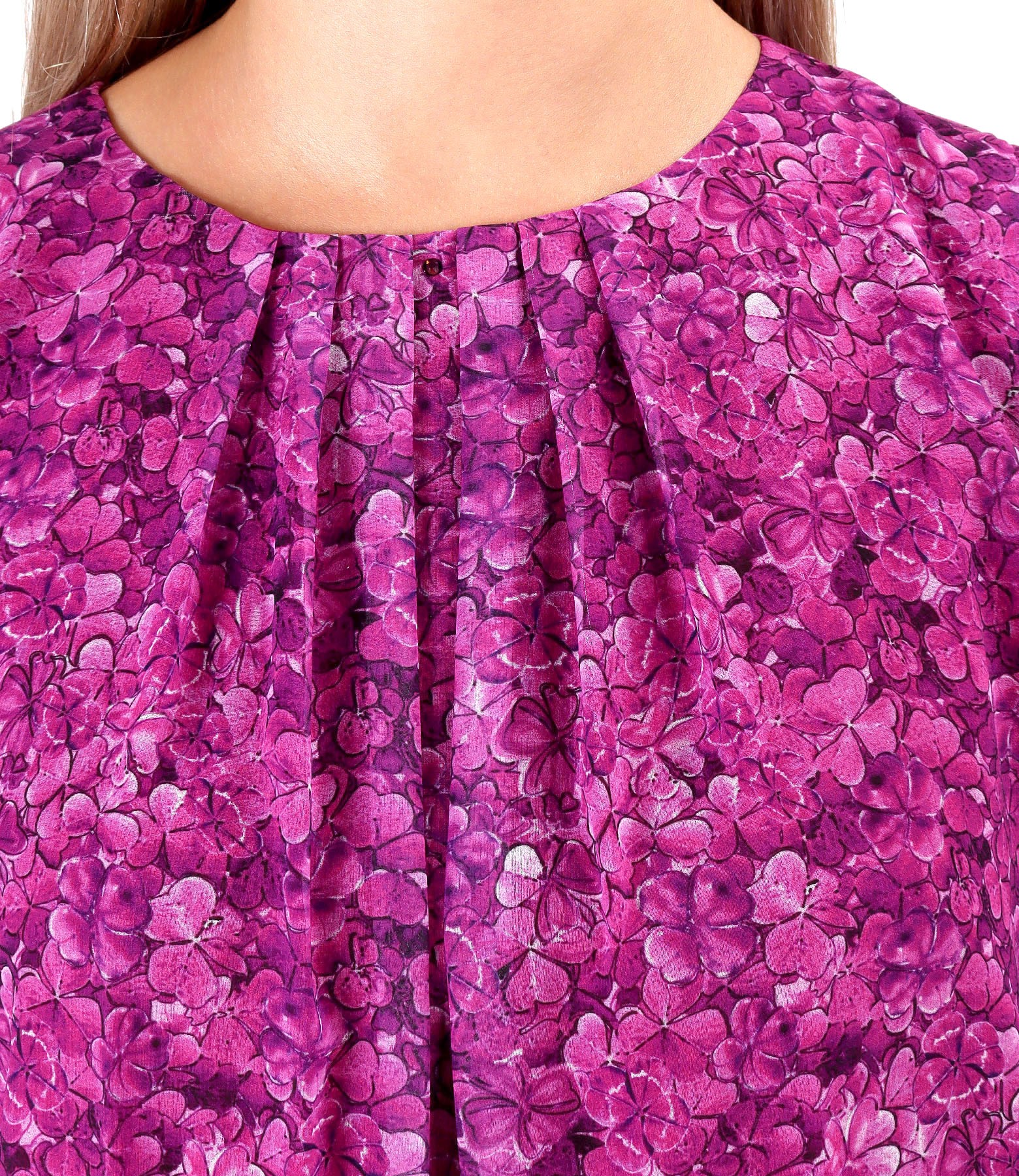 Casual veil blouse with pleats at the decolletage (fuchsia), size