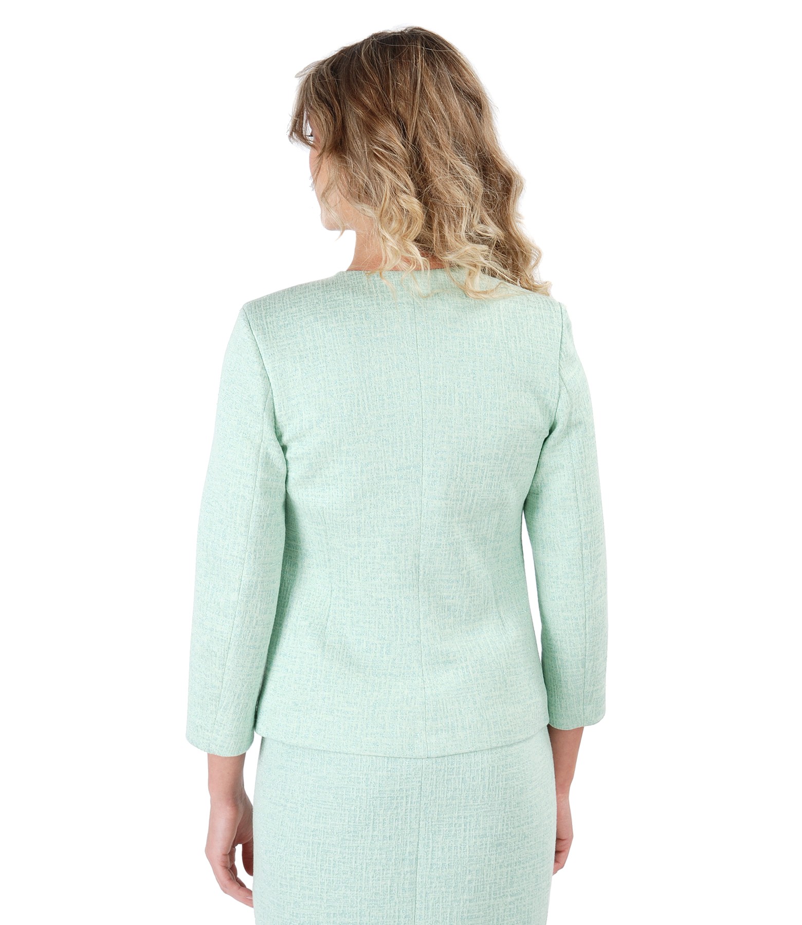 Cotton jacket with effect thread, padded, 3/4 sleevs, embellished with crystals on decolletage. Closes with 4 staples.