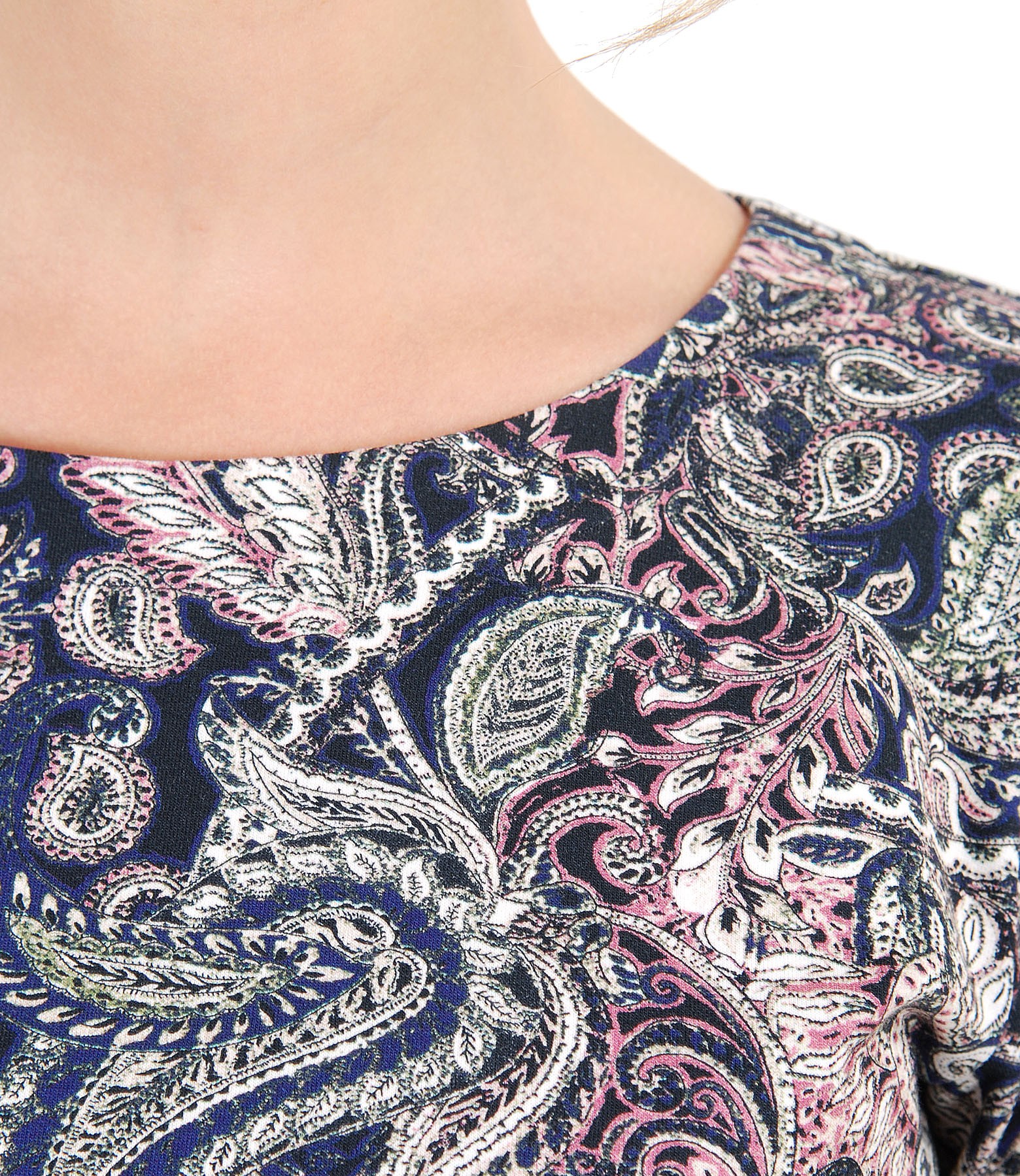 Cotton jersey blouse, with floral print, 3/4 sleeves and round low-cut neck.