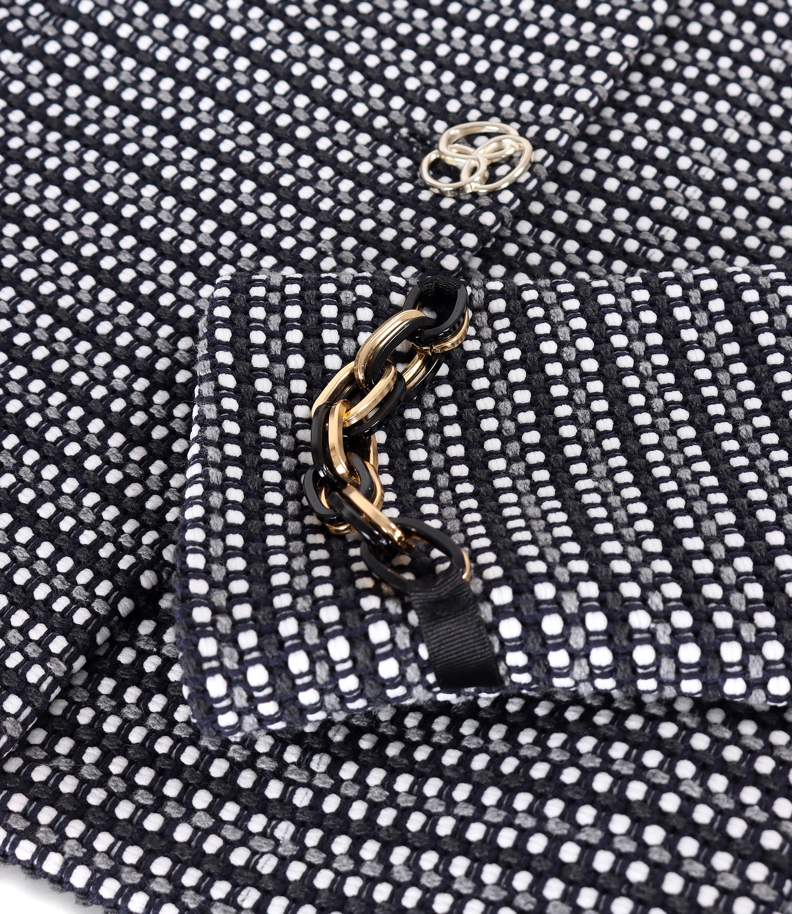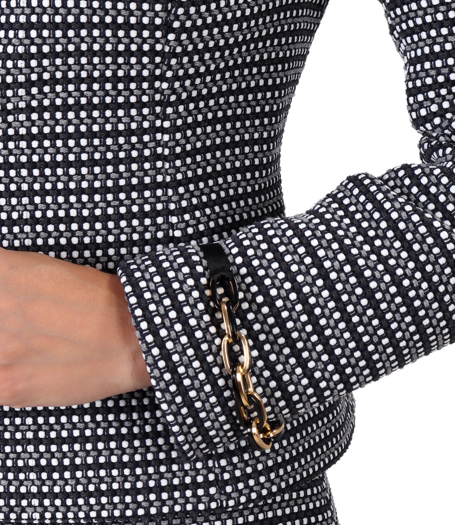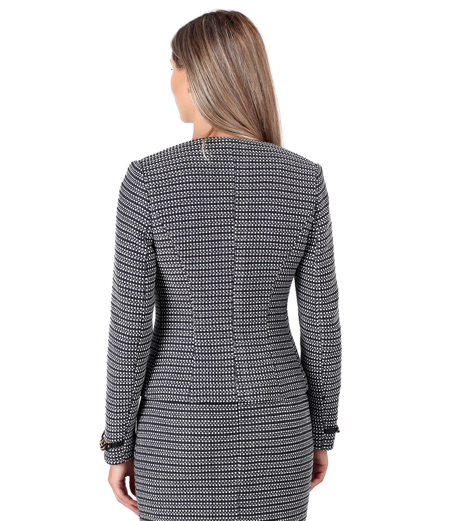 Loop jacket with cotton, with neckline around the neck, with chain and rips at the end of the sleeves. It closes on the face with 1 button.