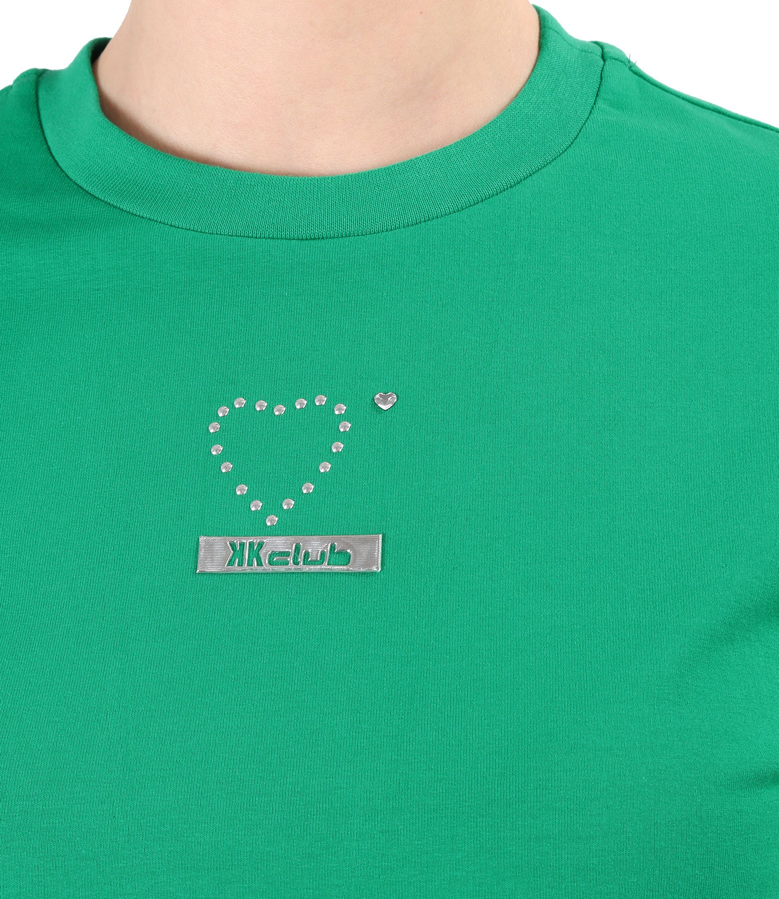 Cotton sweatshirt with long sleeves, round decolletage and decorative elements on the face.