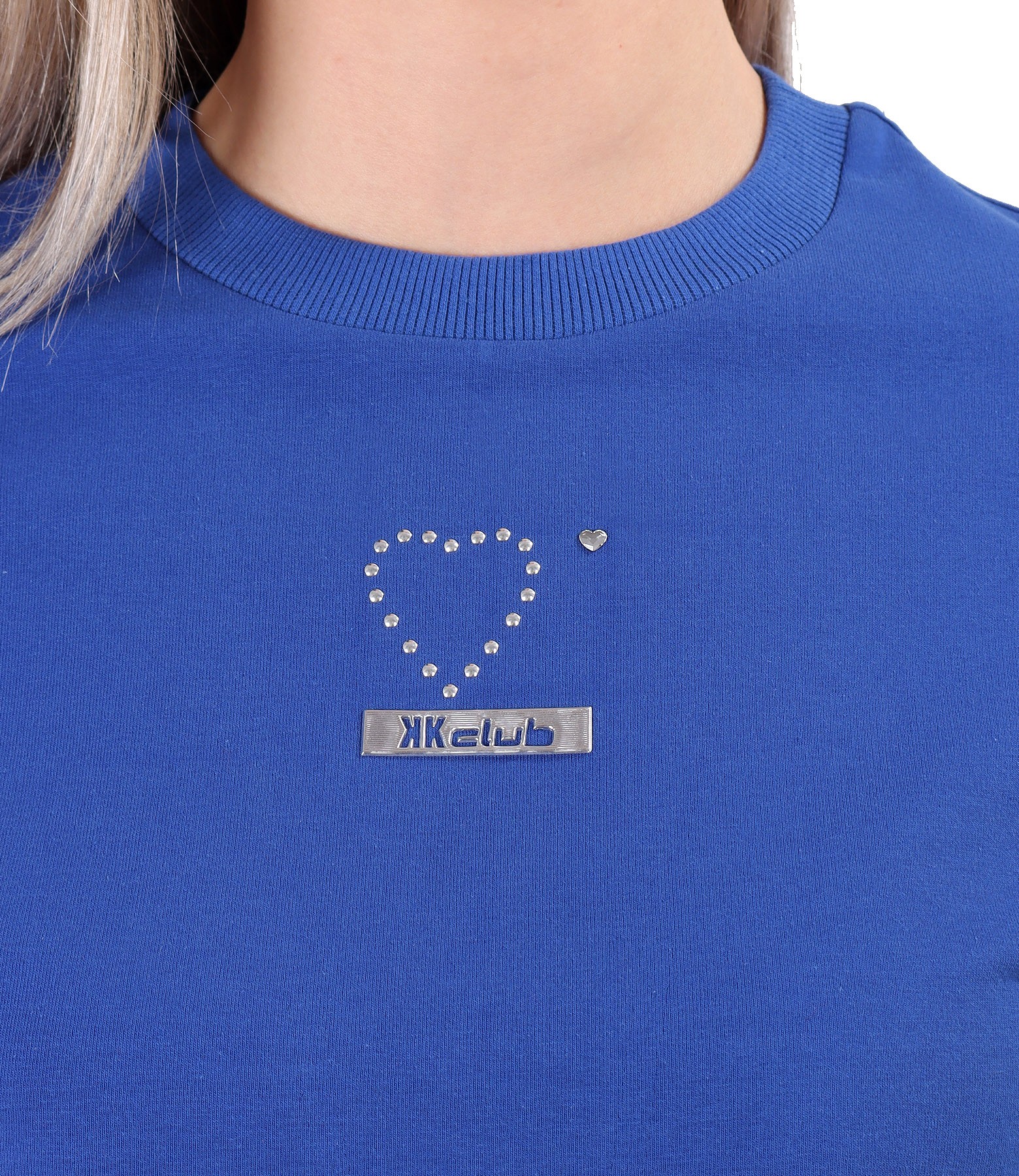 Cotton sweatshirt with long sleeves, round decolletage and decorative elements on the face.