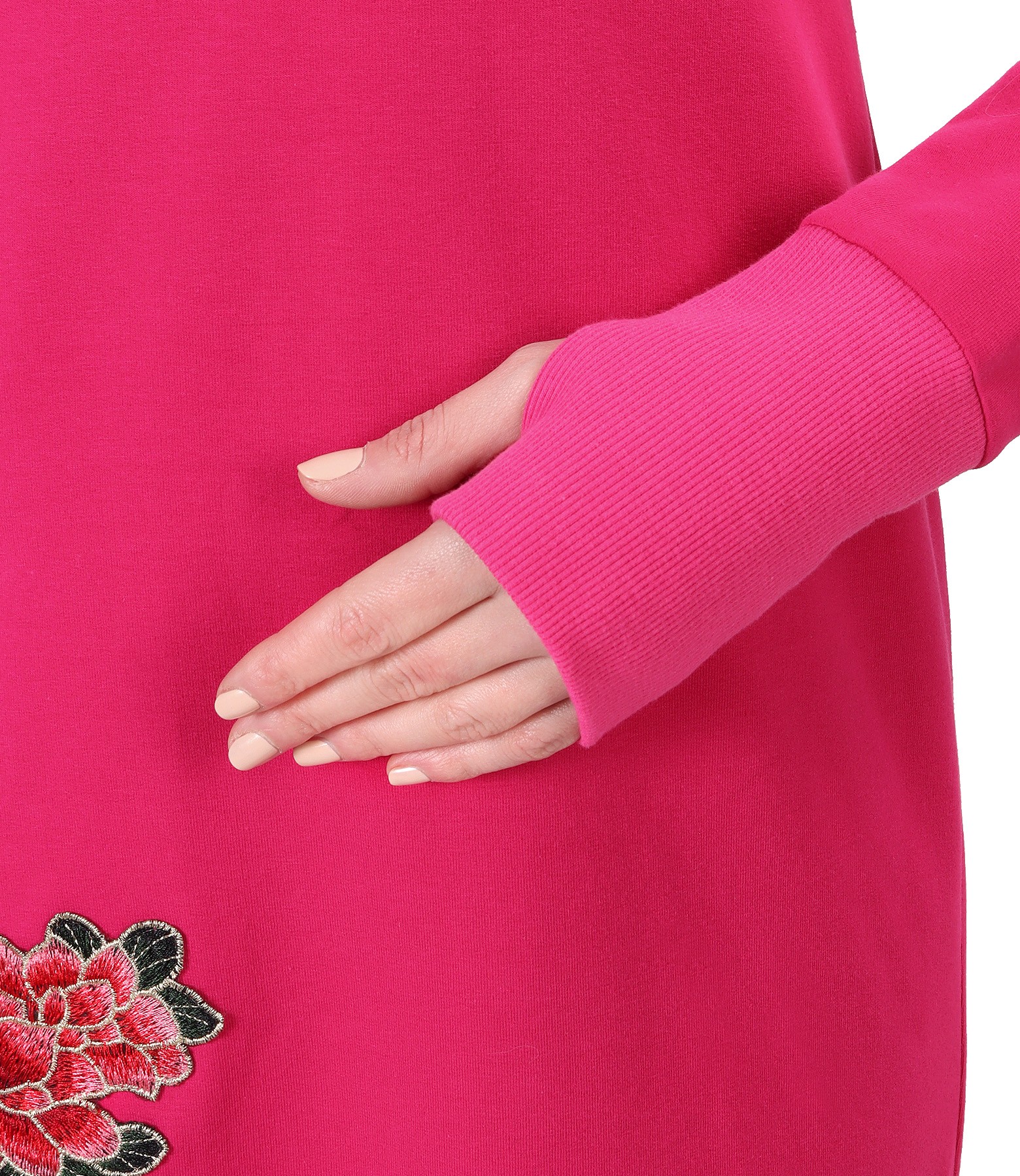 Cotton sweatshirt dress with embroidery applied on the face (Cyclamen), size
