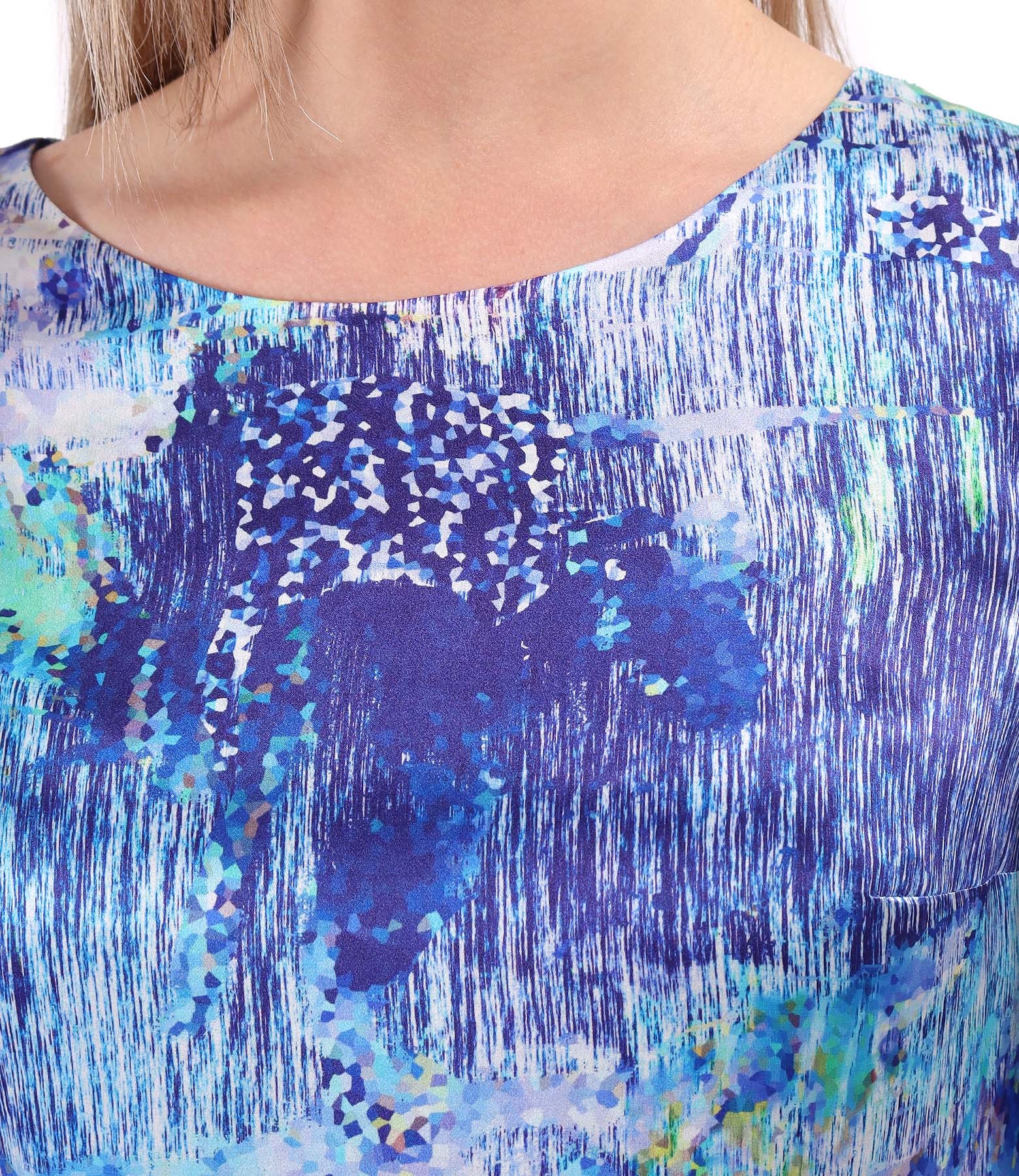 Digitally printed natural silk dress (Blue), size