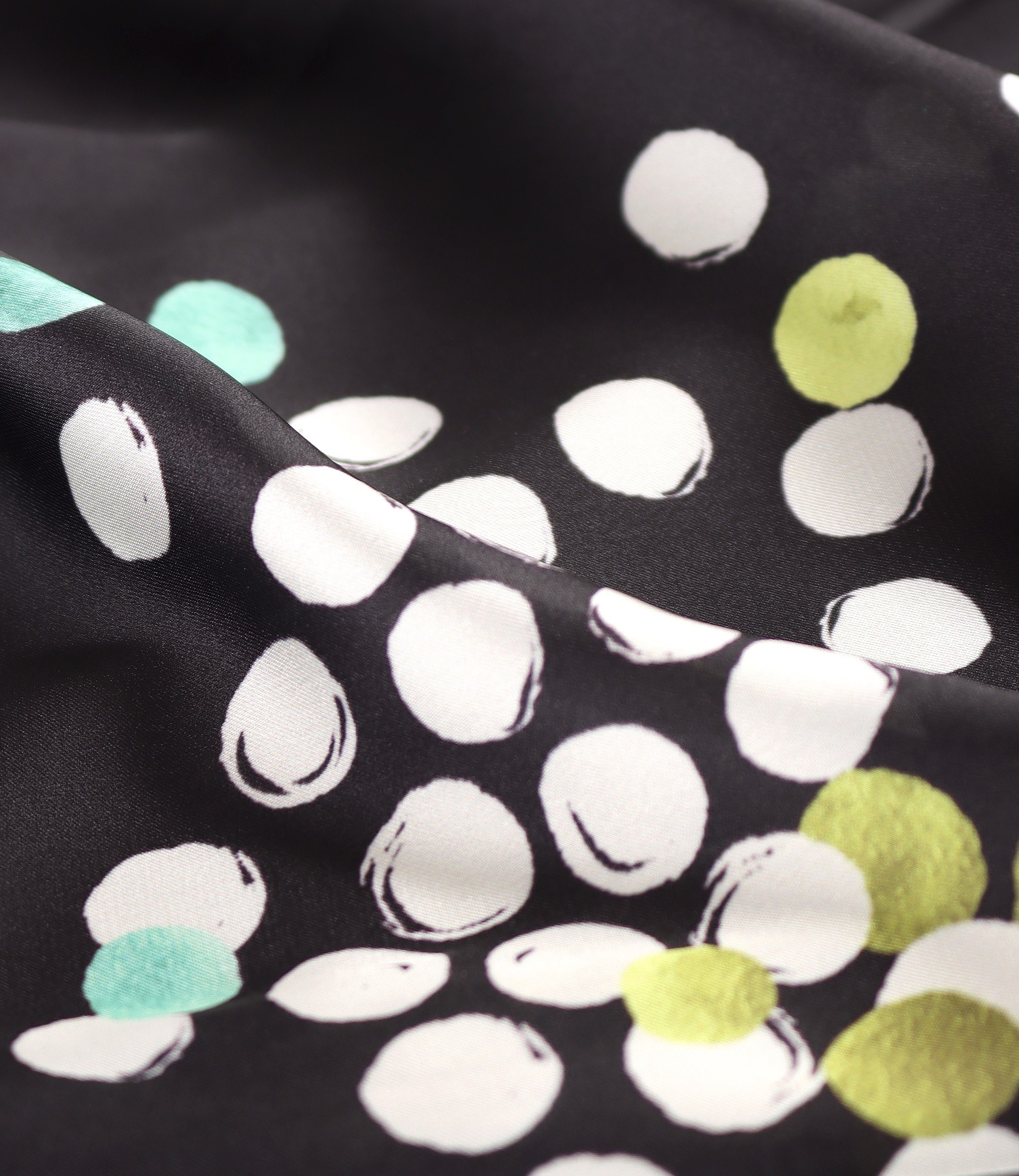 Digitally printed satin blouse with colorful polka dots (Black), size