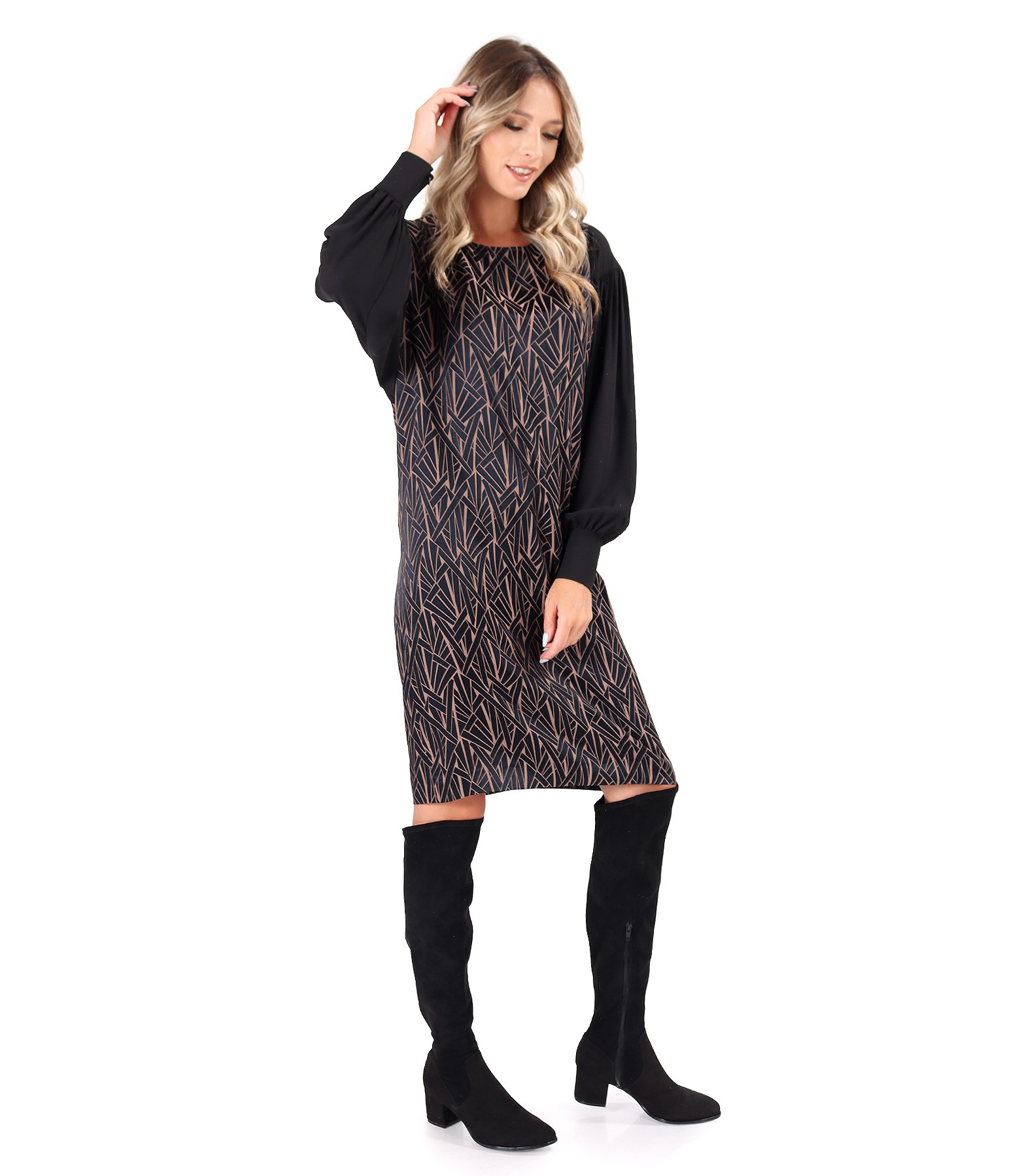 Dress made of elastic viscose fabric with puffed sleeves (Black), size