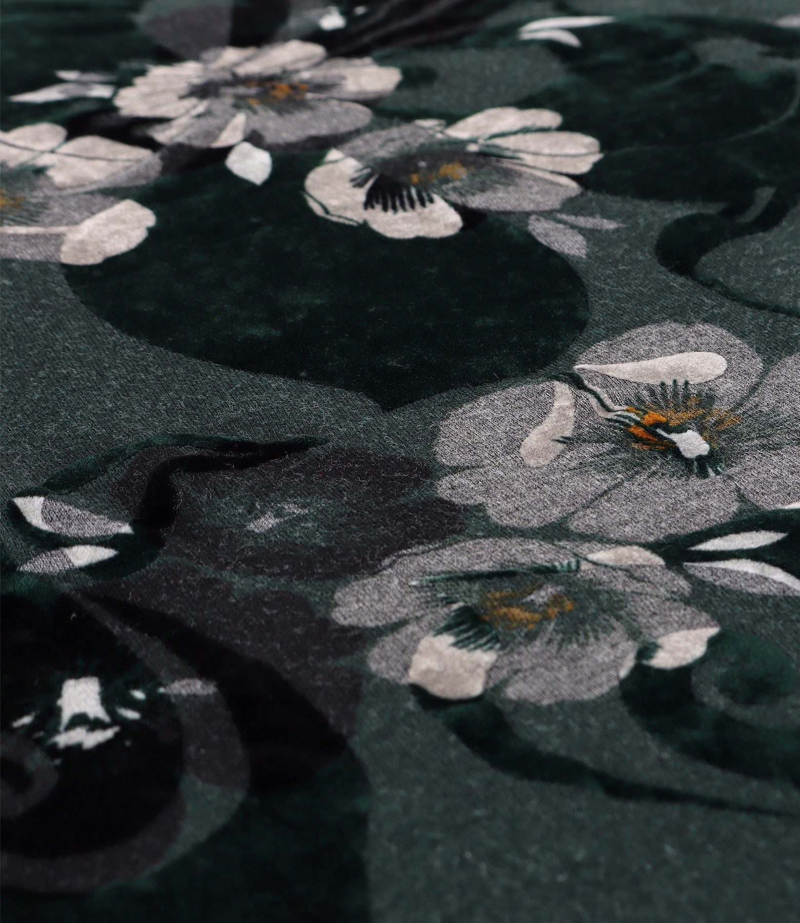 Dress made of thick elastic jersey and brocade velvet with floral motifs (Green), size